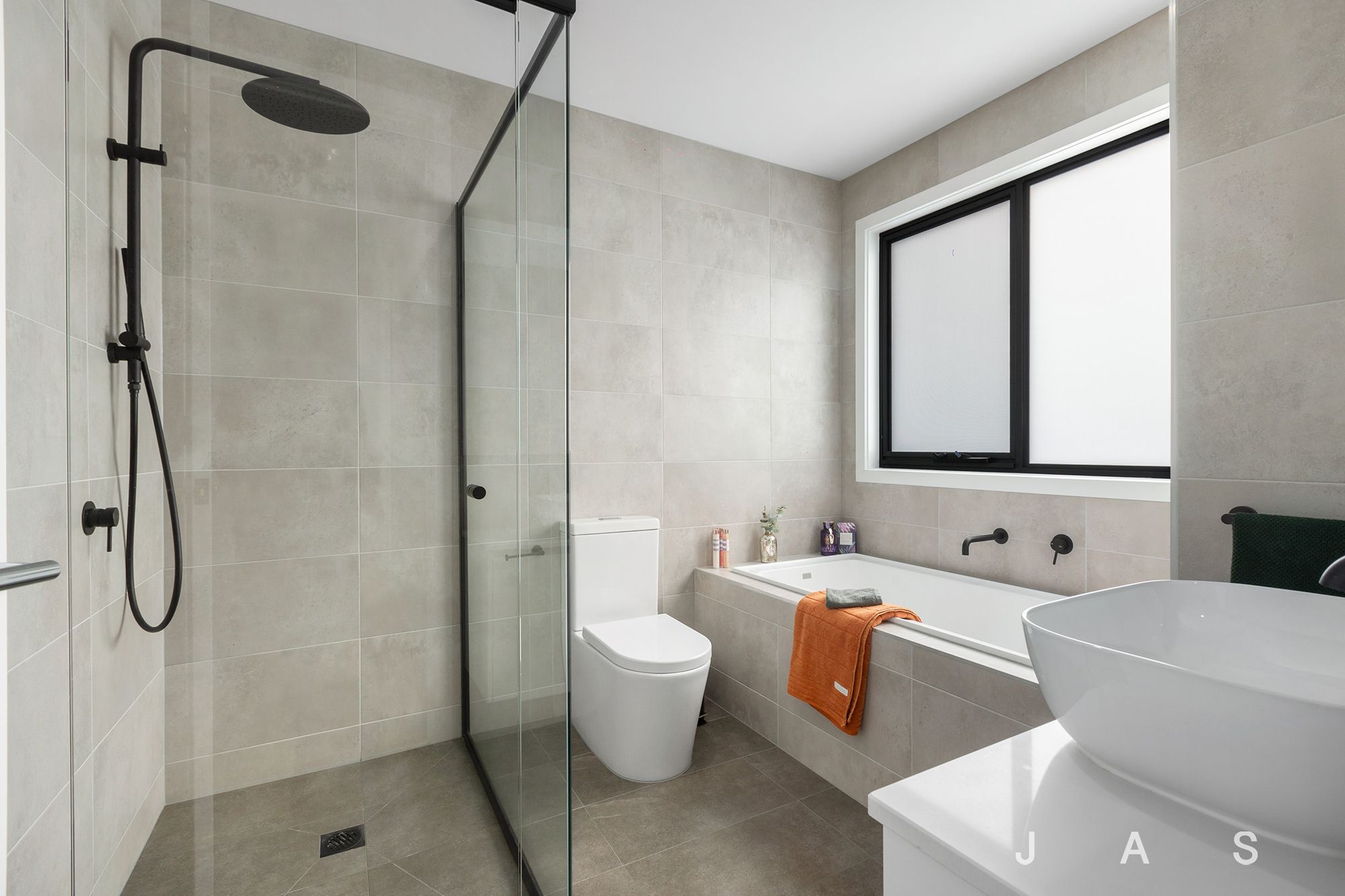 • Luxe main bathroom with bath and shower