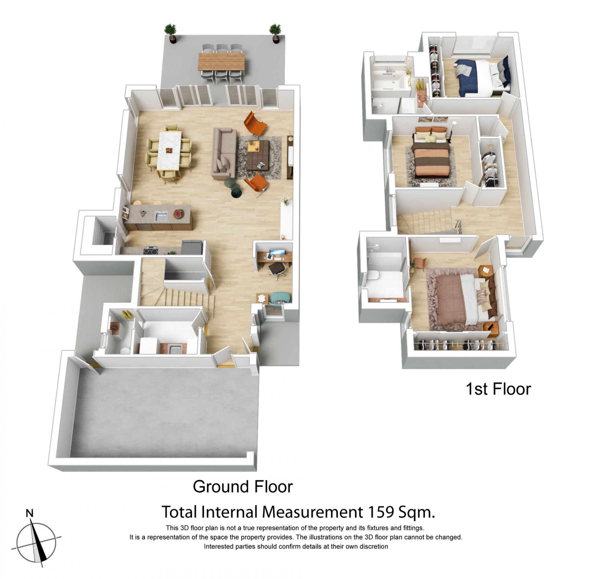 • Engineered timber floorboards + plush carpet