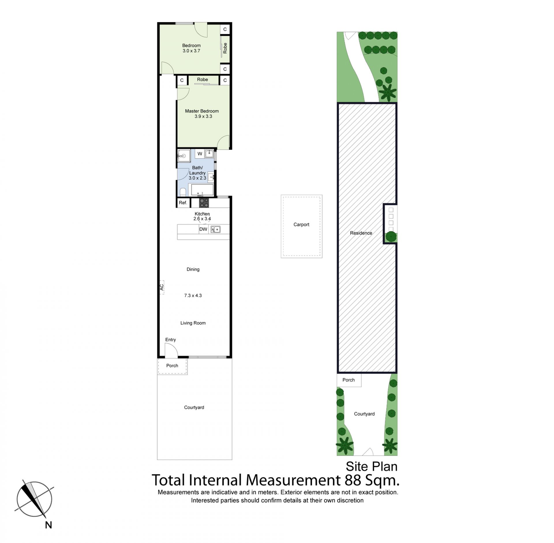 Two carpeted bedrooms with built-in robes offer inviting retreats and are served by the large bathroom/laundry.