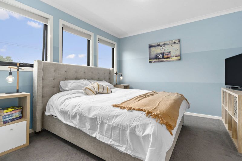 It’s a combination that conveys superlative quality, complemented by a kitchen where stone benches and stainless steel appliances tell a story of style. Filled with light, enhanced by luxury, three divine bedrooms, two featuring a walk-in robe, share the upstairs level with two designer bathrooms including the main bedroom’s elegant ensuite.