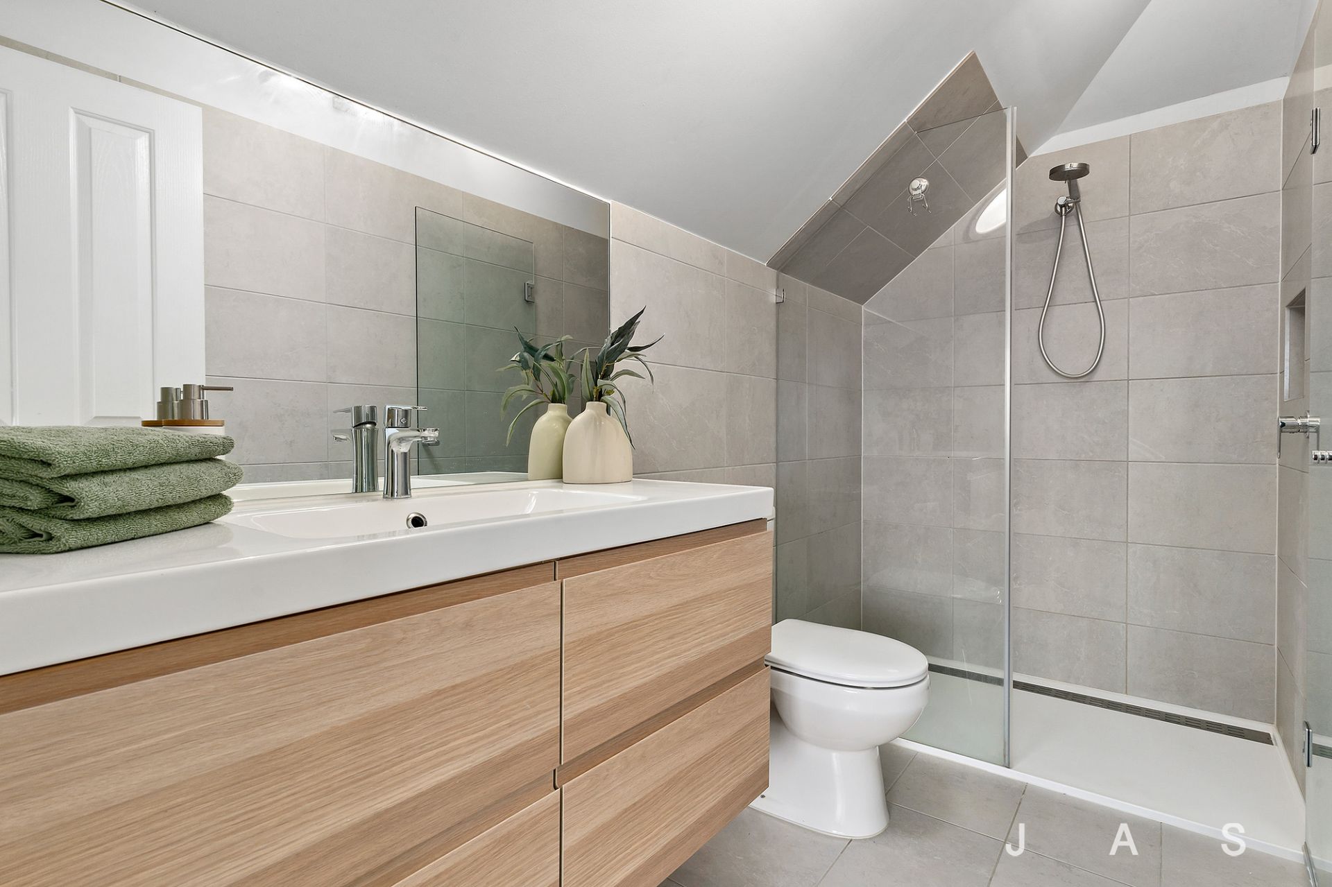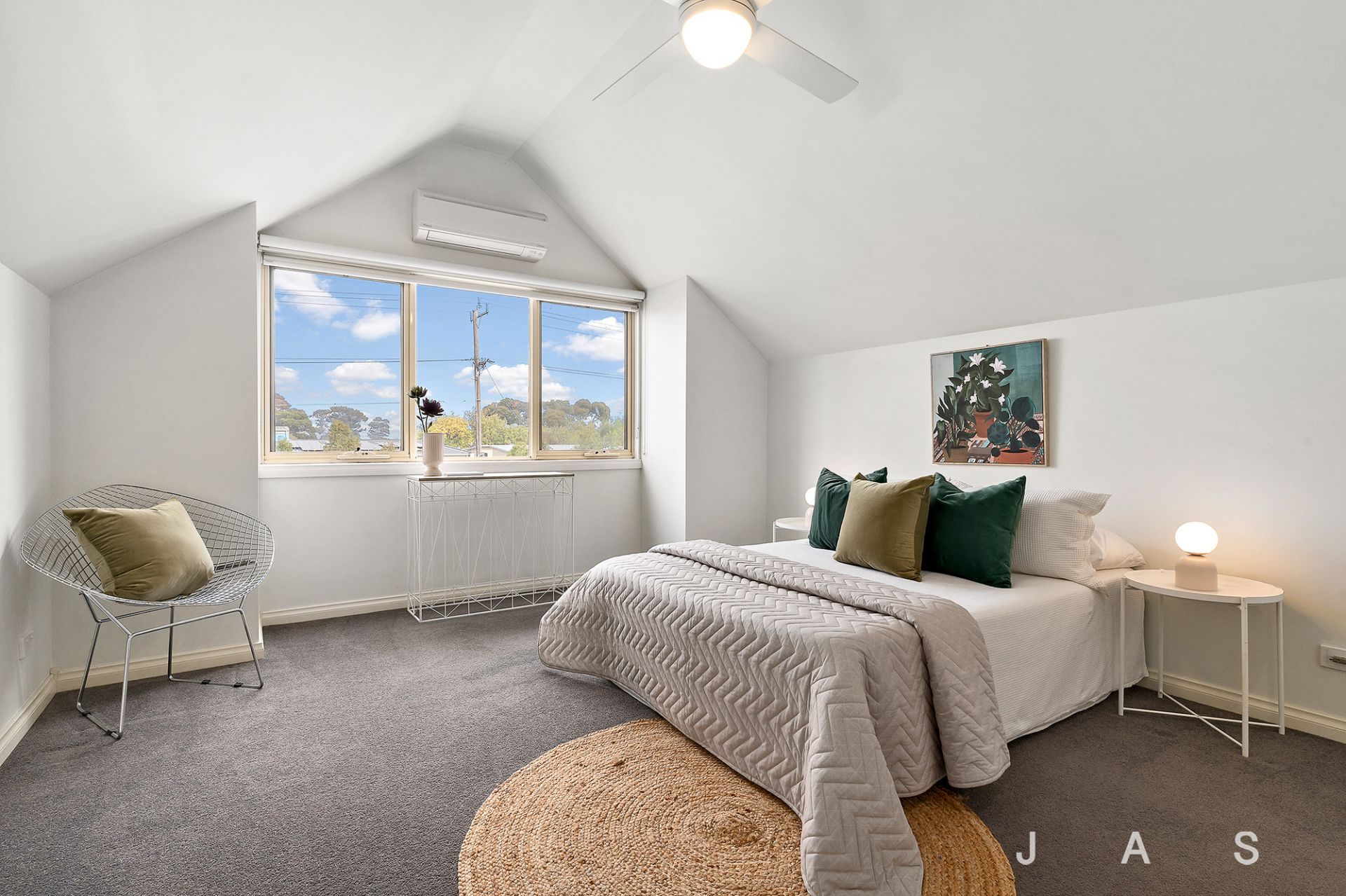 Perched on the upper level, the master bedroom enjoys total privacy. Its soaring cathedral ceiling adds impressive dimensions, while the large walk-in robe and stunning ensuite create an inviting retreat you’ll love escaping to at the end of the day. Two additional bedrooms on the lower level offer built-in robes and flank the spacious main bathroom, where a rainfall shower and an inset bath are complemented by a separate toilet.