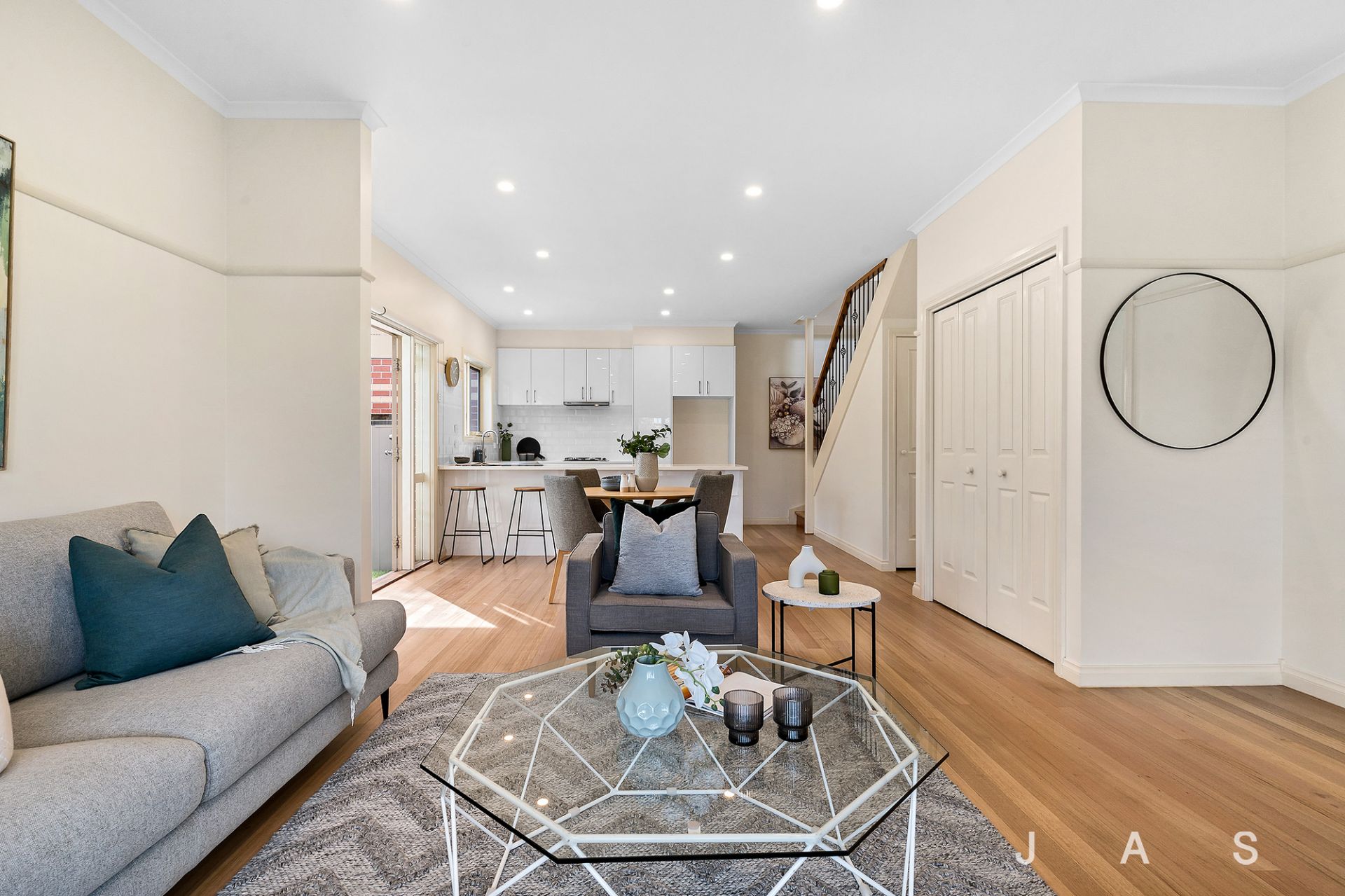 • Sunny open-plan kitchen/dining/living