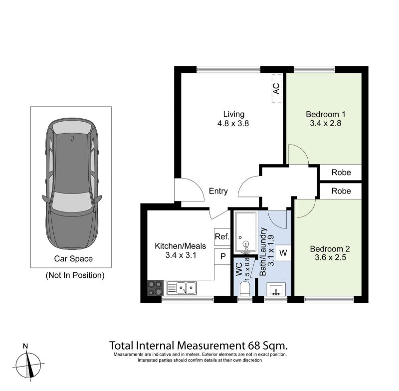 There are two bedrooms, each with built in robes, serviced by the main bathroom with WC facilities.