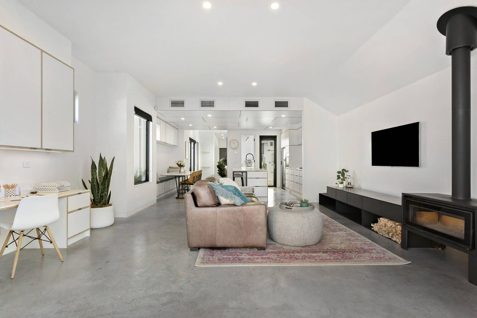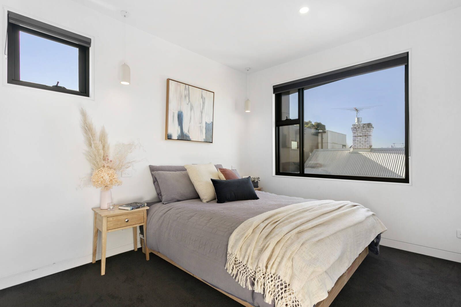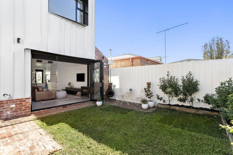A home that dares to be individual in an address that’s always desirable, this architect designed residence achieves spectacular results. Visually striking in profile and proportions, its downstairs spaces include luxurious living and dining areas featuring a contemporary wood fired heater and easy transition to a landscaped outdoor backdrop. The open-plan kitchen’s sleek finishes, elite fittings and walk-in pantry complement its perfect performance on a ground floor level that’s completed by a flexible retreat and a courtyard escape. Three bedrooms and two bathrooms, including a main bedroom with an exceptional ensuite, share the upstairs floor with a second retreat while the roof-top level reveals a fabulous terrace for entertaining with sweeping views of the entire city skyline. Car parking access from Hotham Street, sought after proximity to Seddon station, Seddon Village and the CBD itself!