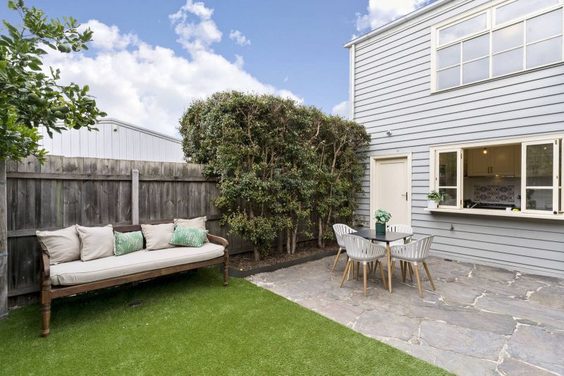 Polished floorboards complement welcoming living and dining areas that are served by a well-appointed kitchen with great storage while a garden backdrop featuring paved entertaining and attractive landscaping completes the ambiance. Hydronic heating, ducted cooling, excellent storage throughout and car parking add fine finishing touches to a property that’s walking distance from Gamon Street, Victoria Street, Yarraville village and Seddon station!