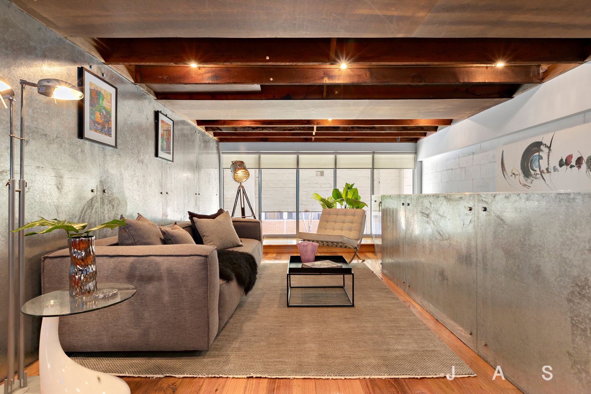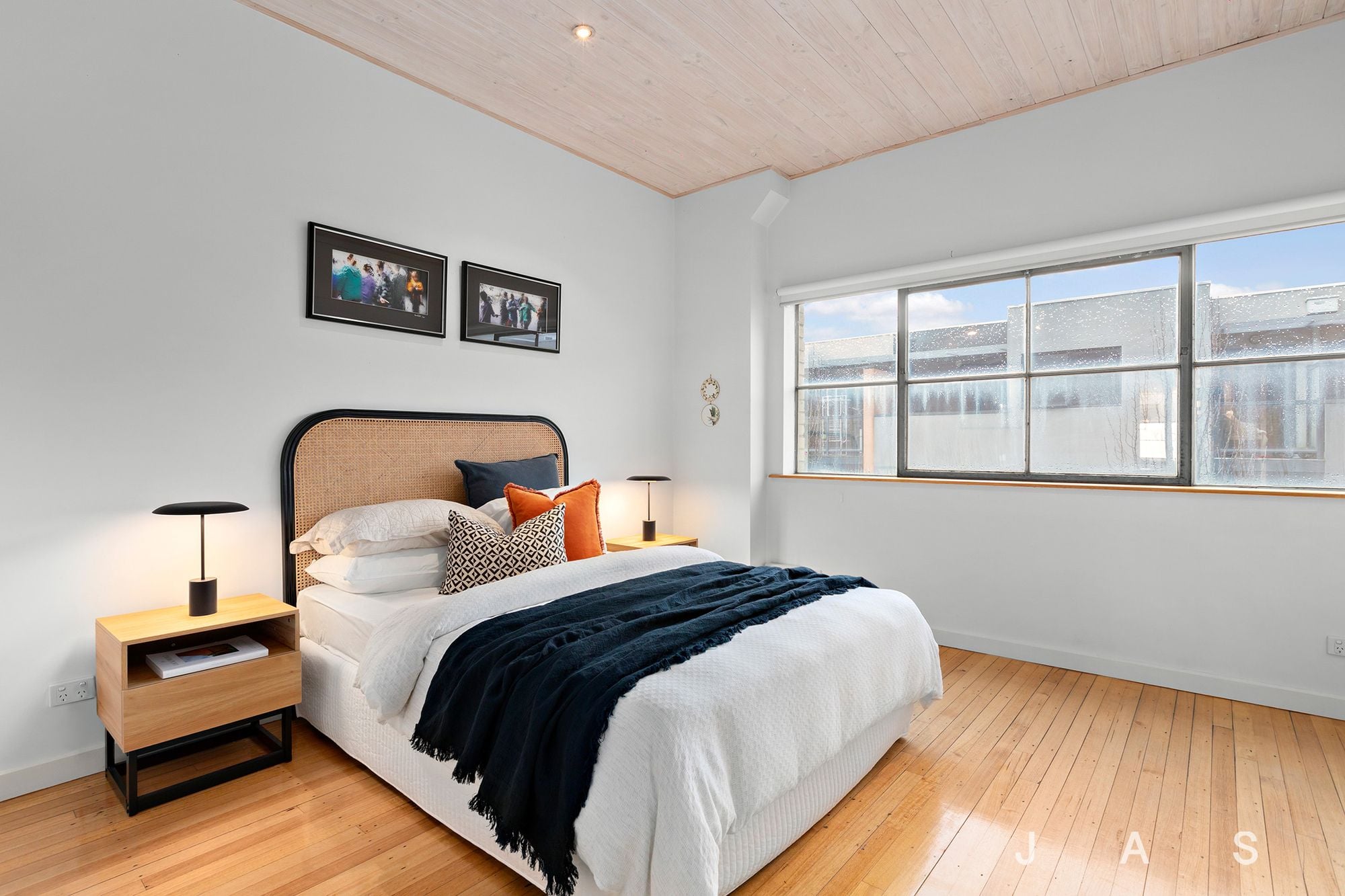 • Factory roots reflected in timber-clad ceilings + timber floorboards + original warehouse windows + steel staircase