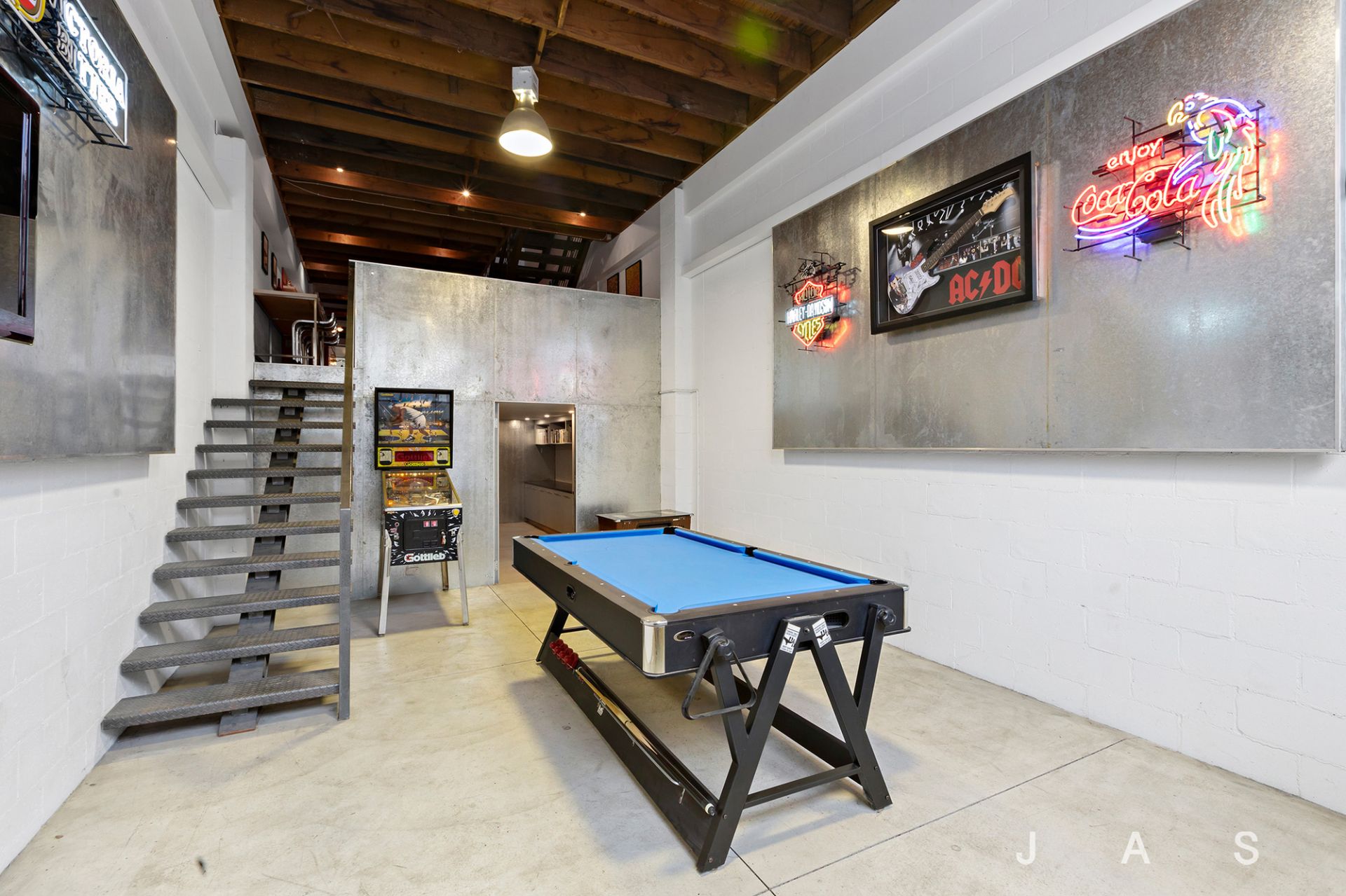 The stunning kitchen/dining space features a stainless-steel topped kitchen crowned by a spectacular double-height void and more than enough room for a big dining table to gather family and friends around for memorable dinner parties. A large living room is complemented by a huge entertaining balcony with city views, perfect for hosting summer soirees, while at ground level, a large games room offers the perfect spot for the pool table.