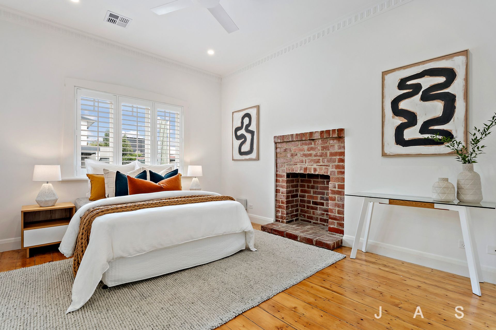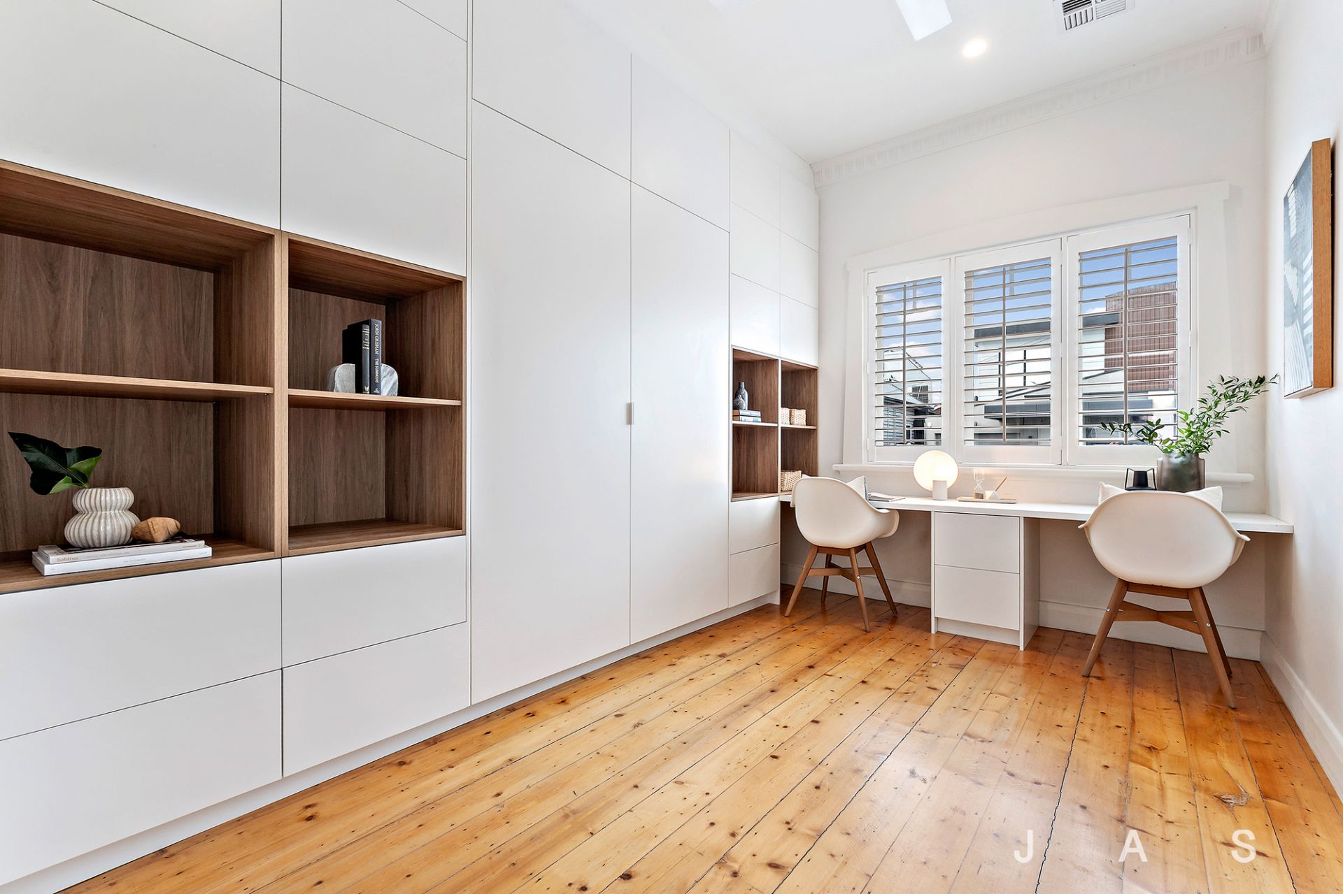 • Timber floorboards + plantation shutters