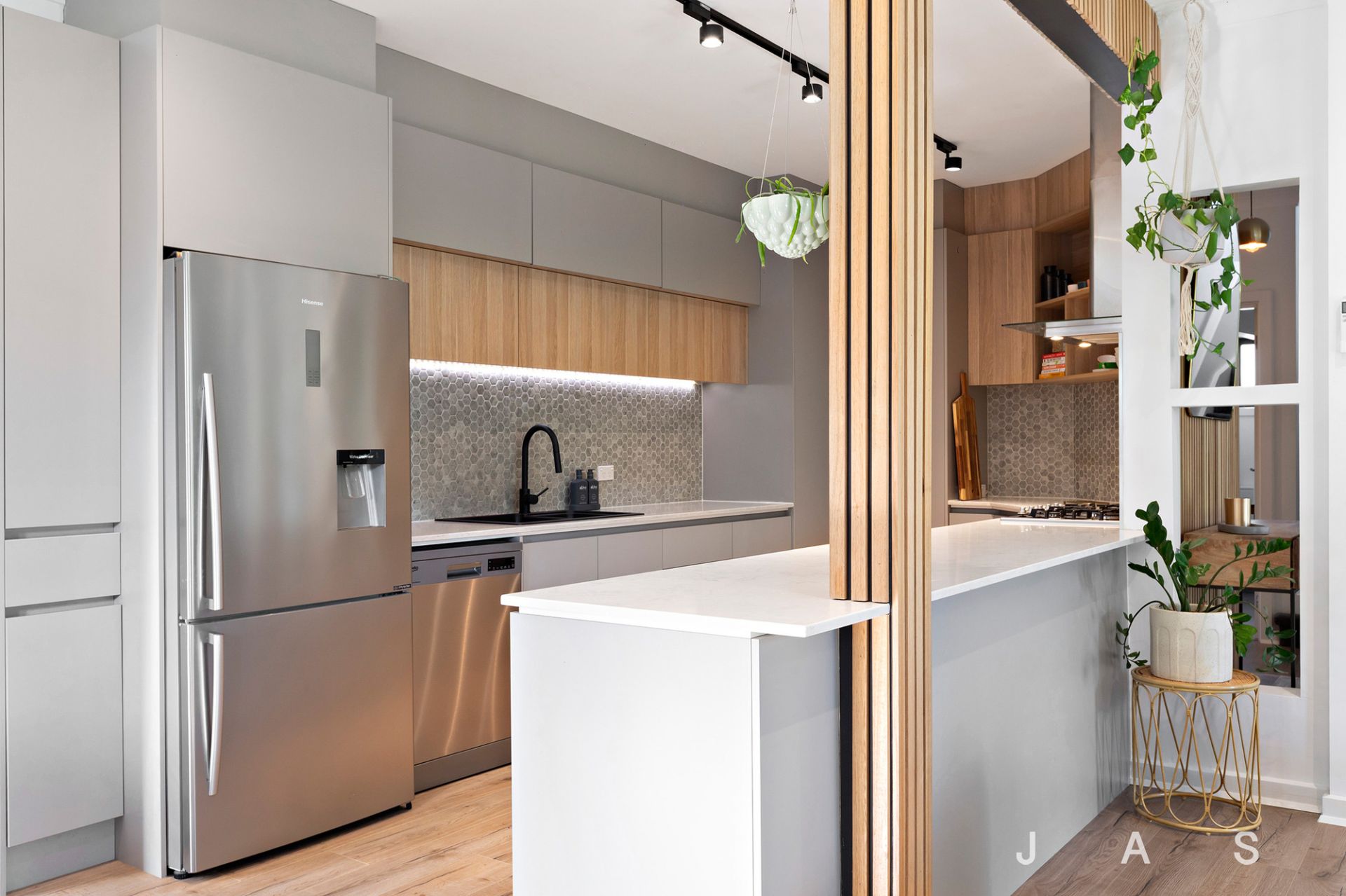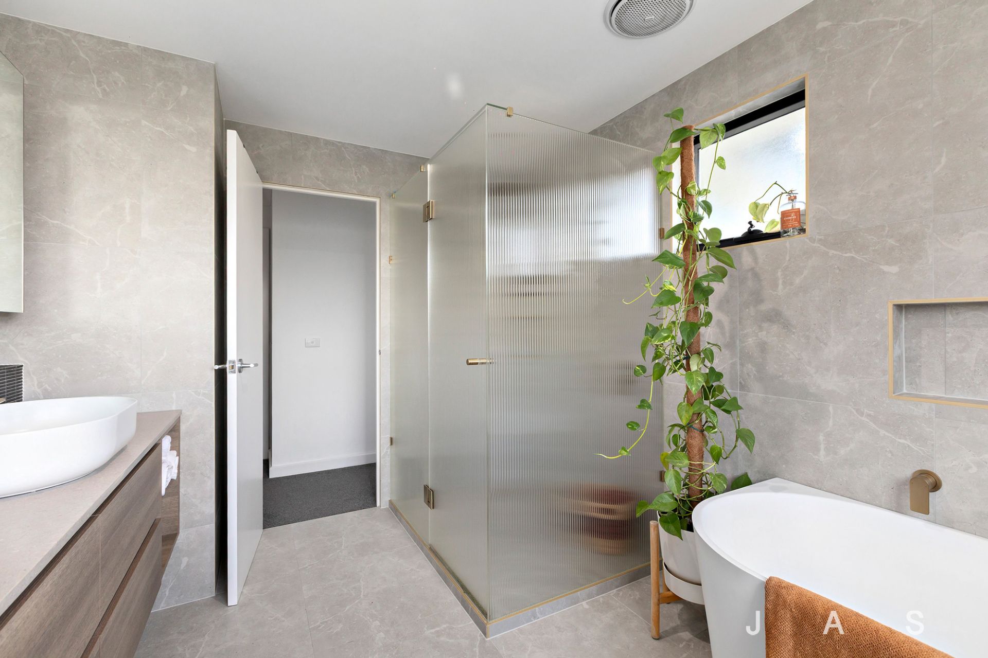 • Three bedrooms with built-in robes, including an oversized master with chic timber panelling