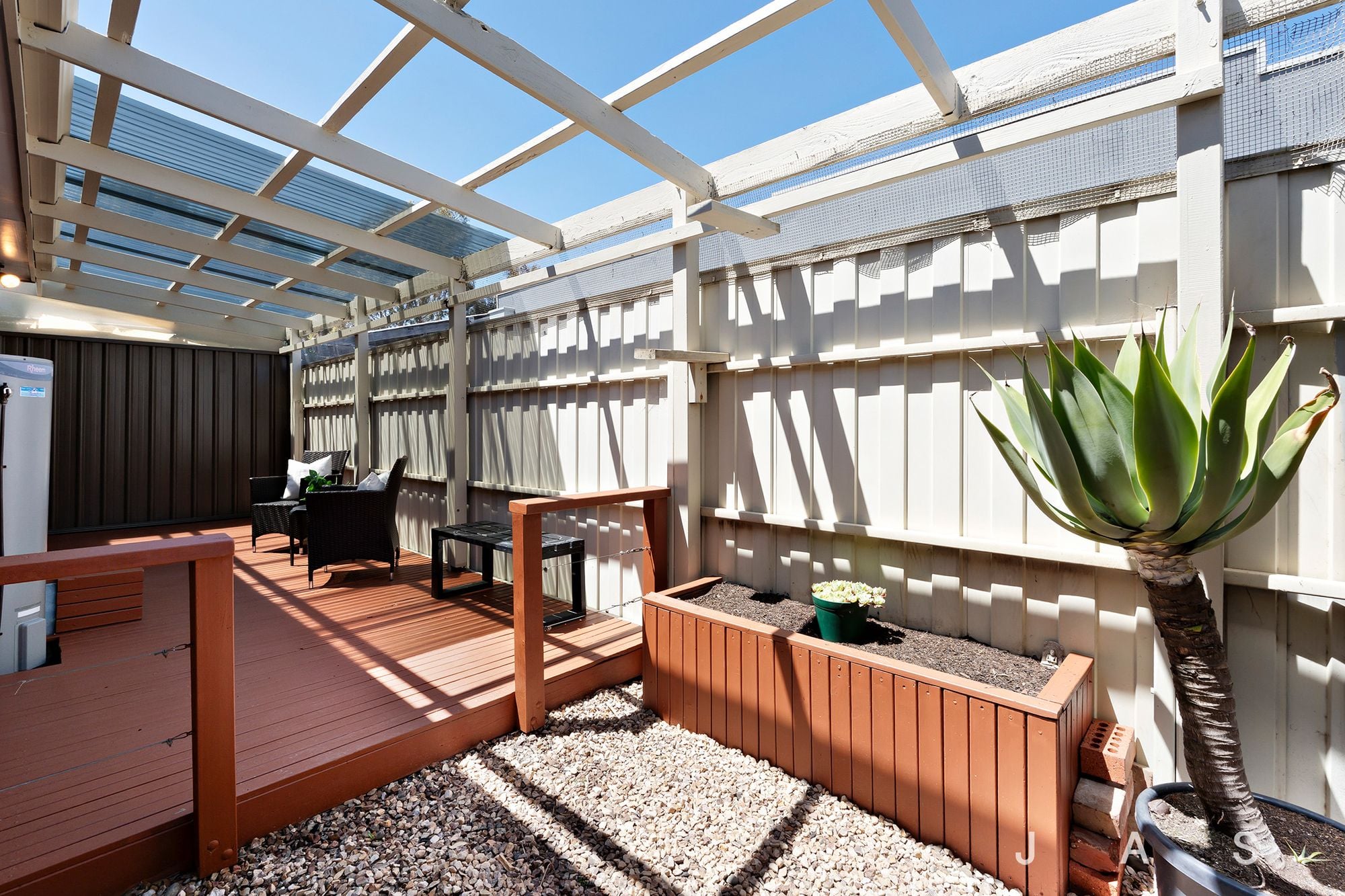 As well-proportioned as it is easy to live in, the home features an oversized bedroom joined by ample robe space and a smart bathroom with bath and shower; perfect complements to a main section awash with all-day northern sunlight. Substantial living and dining areas are served by a kitchen with plentiful storage and premium appointments, while a pergola brings year-round usability to an entertainer’s alfresco area.