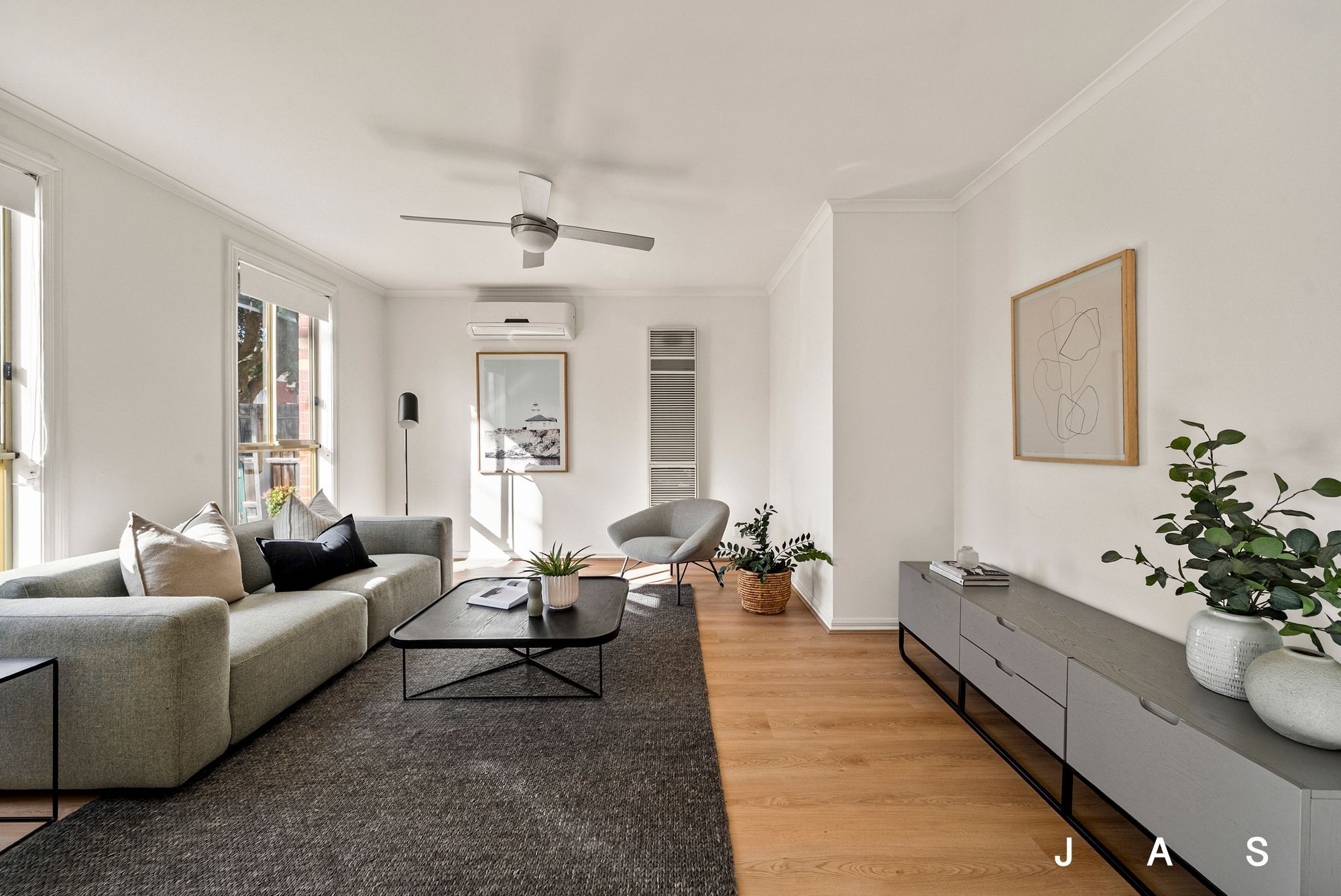 • Split-system heating/cooling + ceiling fans