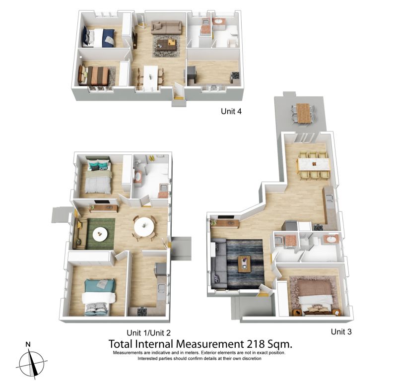 • 3x two-bedroom units and 1x one-bedroom unit