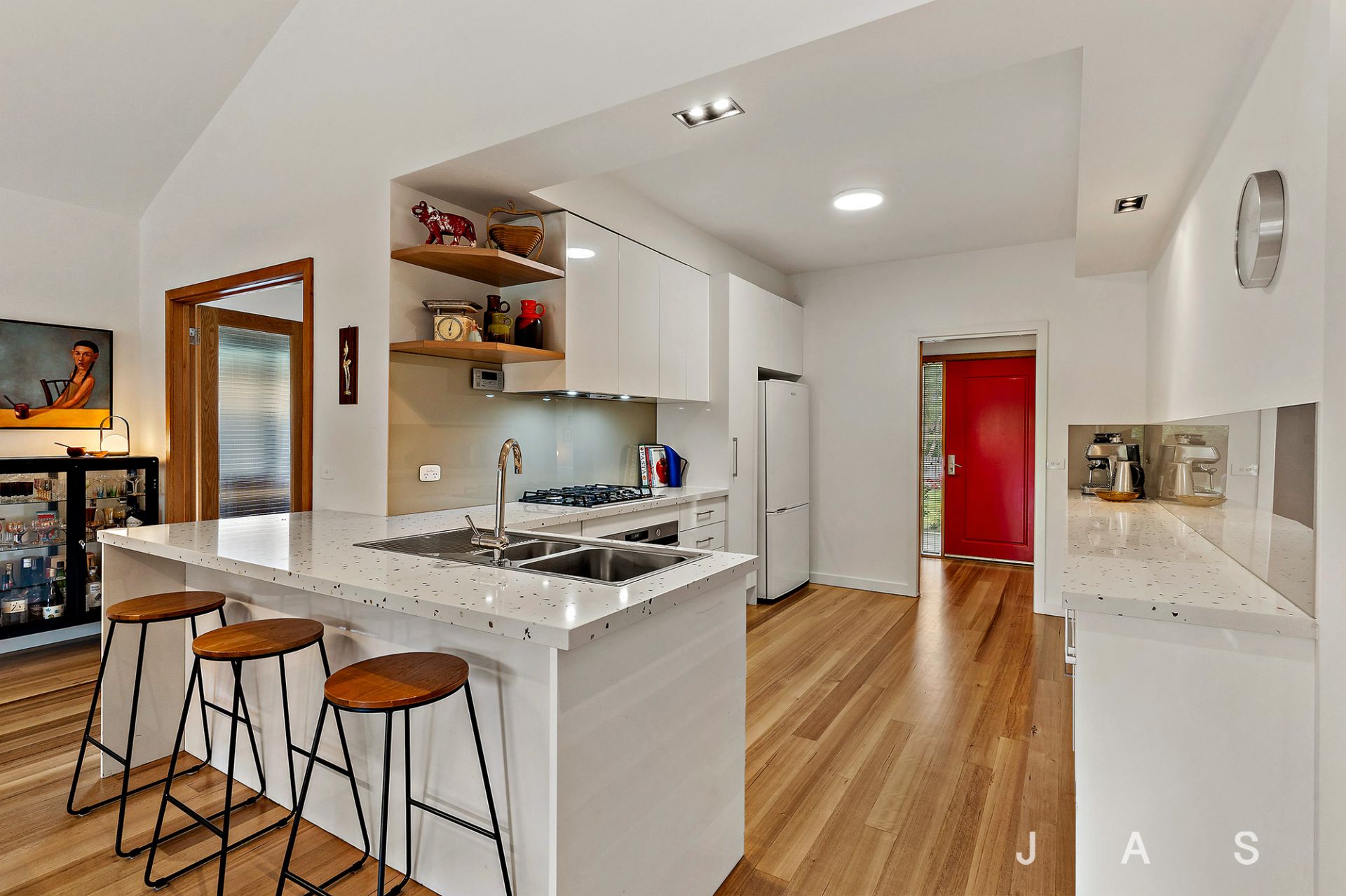 A generous study nook / niche extends the living space, while French doors invite you to dine and entertain alfresco on the back deck with views of the huge back garden beyond, where a BBQ patio offers extra entertaining space and the sprawling lawn awaits games of backyard cricket and footy.