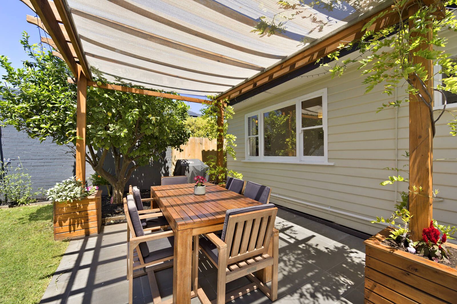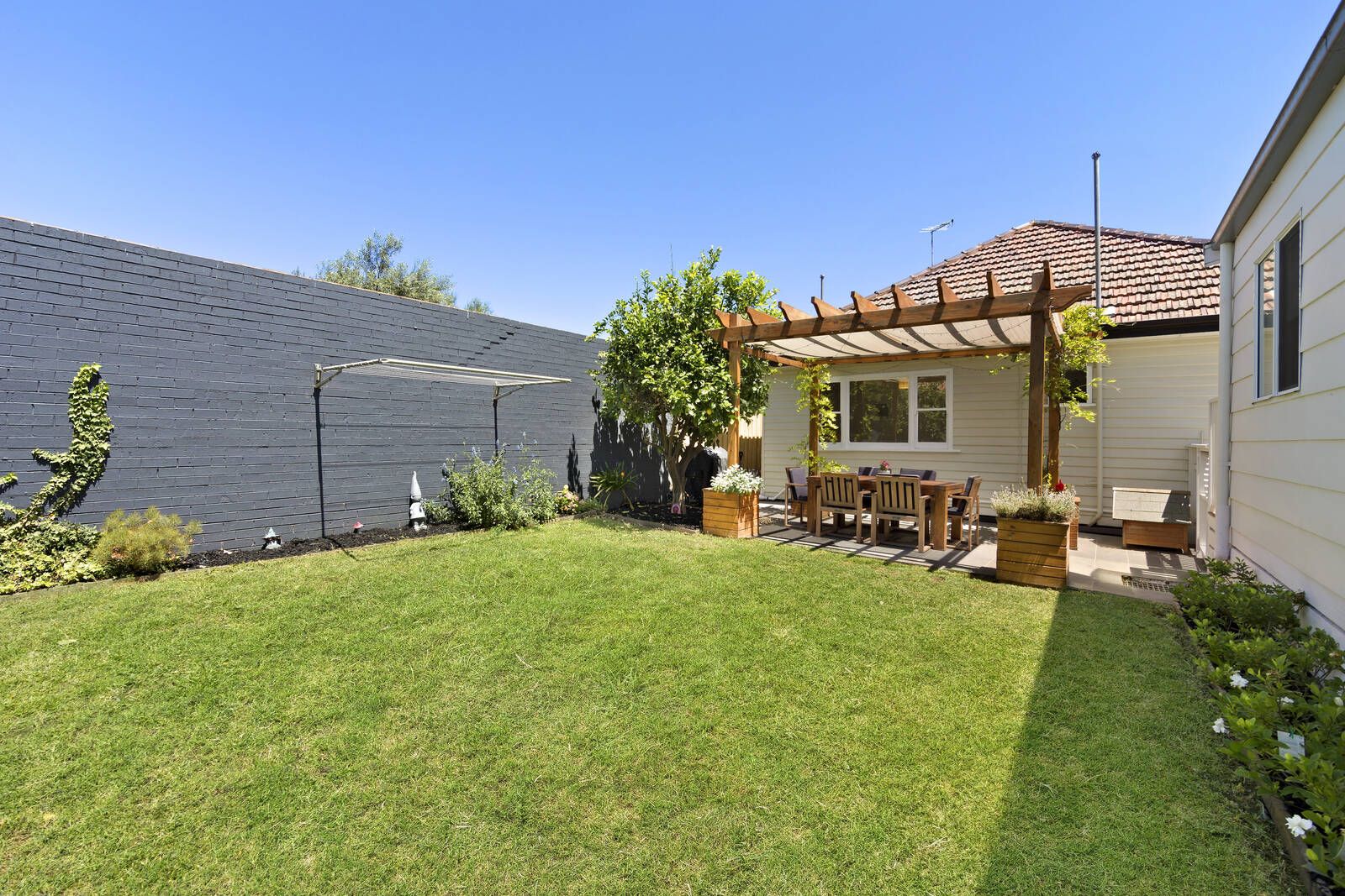 Four bedrooms, or three and an extra lounge if so preferred, surround a charming central living room while the separate kitchen/dining area’s user friendliness is evident in both its details and its dimensions. A neat bathroom, separate laundry, high ceilings, substantial dust proof attic storage and ducted heating further enhance spaces that lead to pergola entertaining and a garden where productive fig, lemon and apple trees grow.