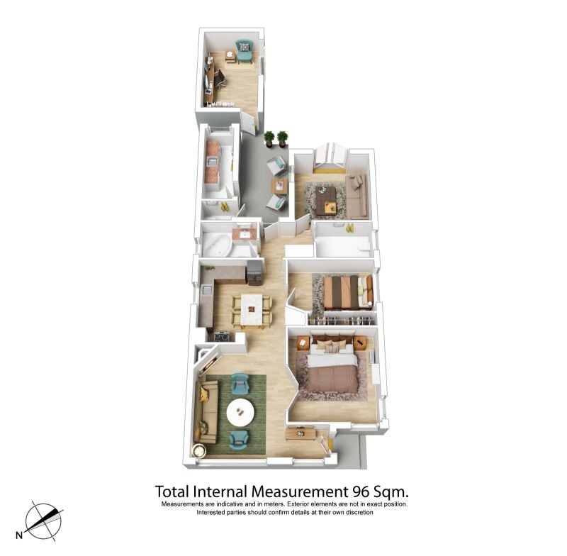 Two bedrooms offer spacious accommodation, with one appointed with heating and cooling and the other boasting a generous built-in robe. Recently refreshed, the centrally located bathroom offers a luxe rainfall shower over a comfy corner bath and is ideally complemented by two separate toilets.