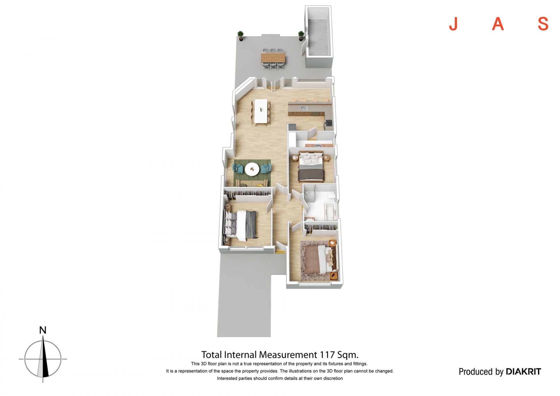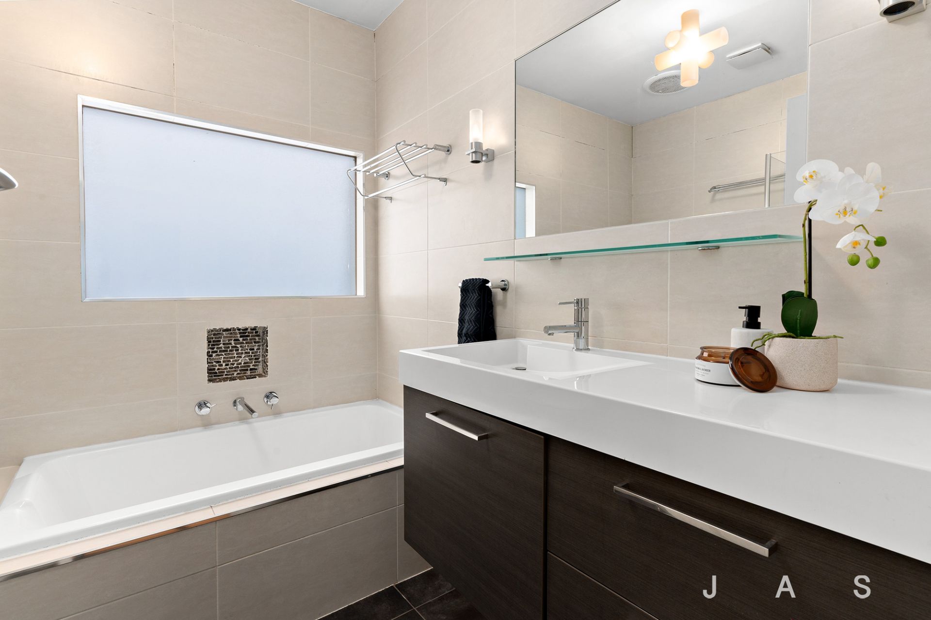Honey-hued timber floorboards sweep through three large bedrooms and the sunny open-plan living area, where generous living, dining and meals zones are joined by a well-appointed modern kitchen with stone benchtops, stainless steel appliances and chic subway tiling. French doors invite you to the large alfresco entertaining deck for effortless outdoor dining with views of the established back garden, where the kids will have plenty of space to play.