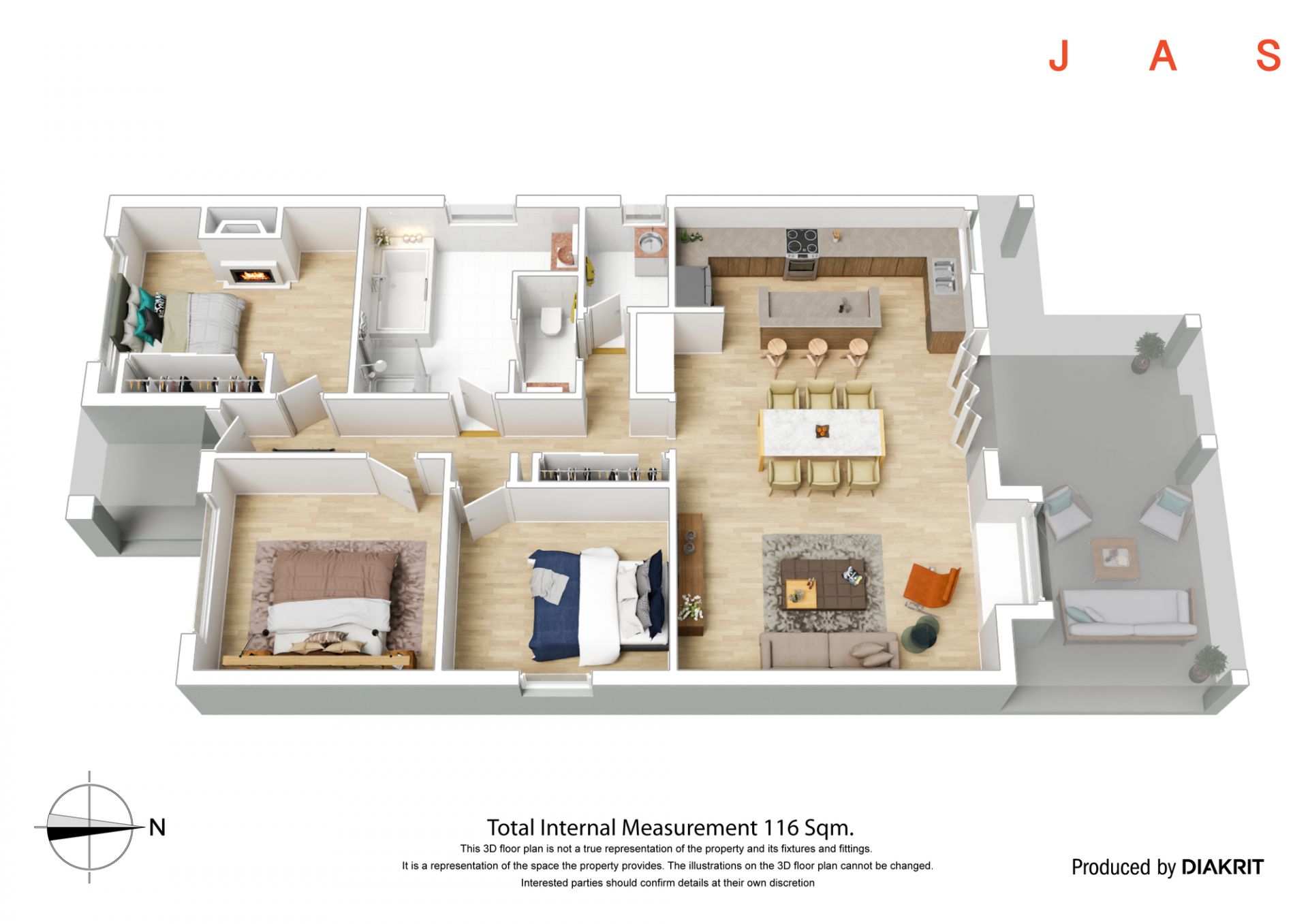Three bedrooms include a large master with a built-in robe and are served by a spectacular super-sized bathroom, where a free-standing bath complements a separate shower, an enclosed powder room offers convenience and heated towel rails add an extra touch of luxury.