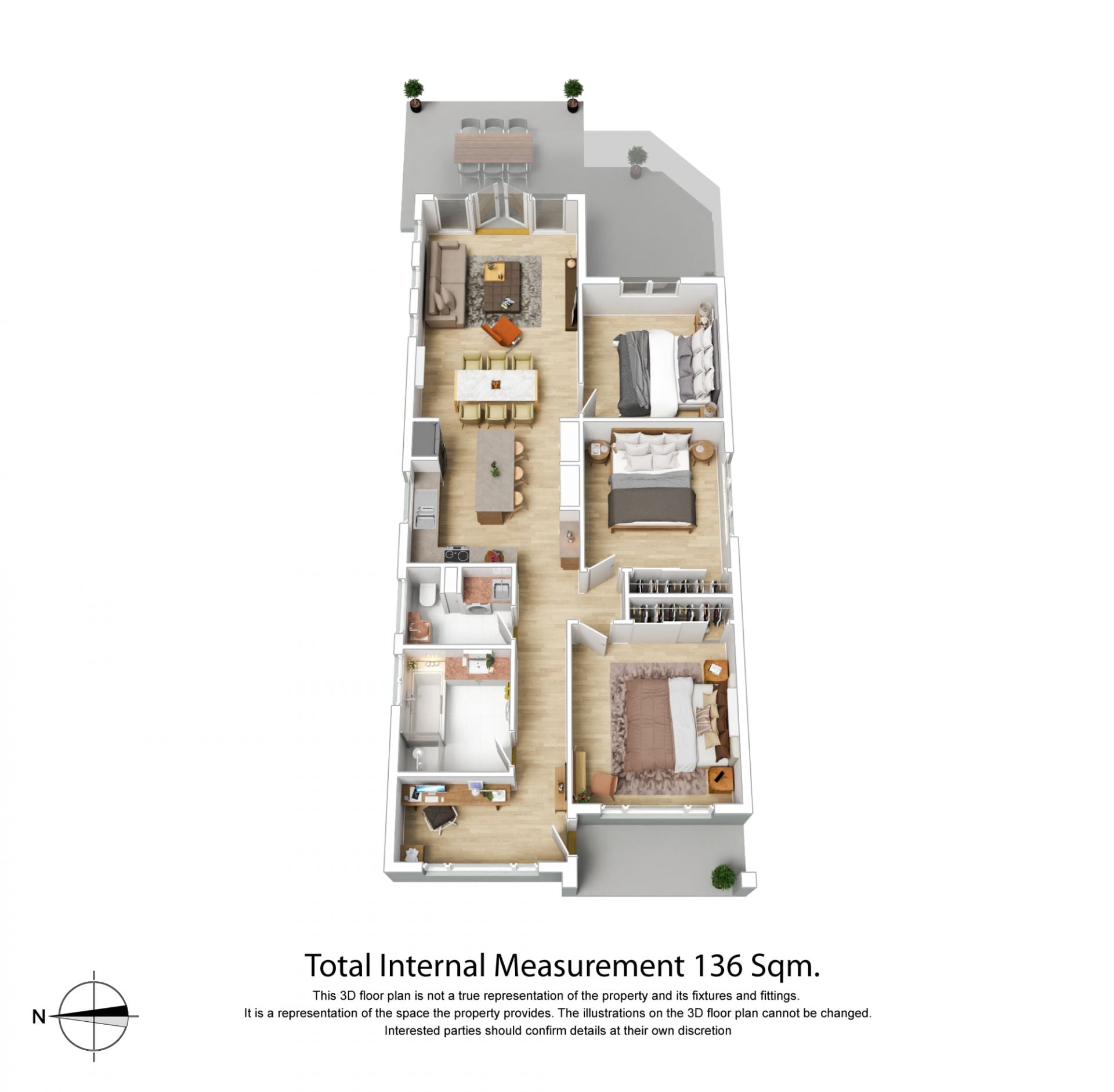 • Three bedrooms, a bathroom, open living/dining area and well appointed kitchen