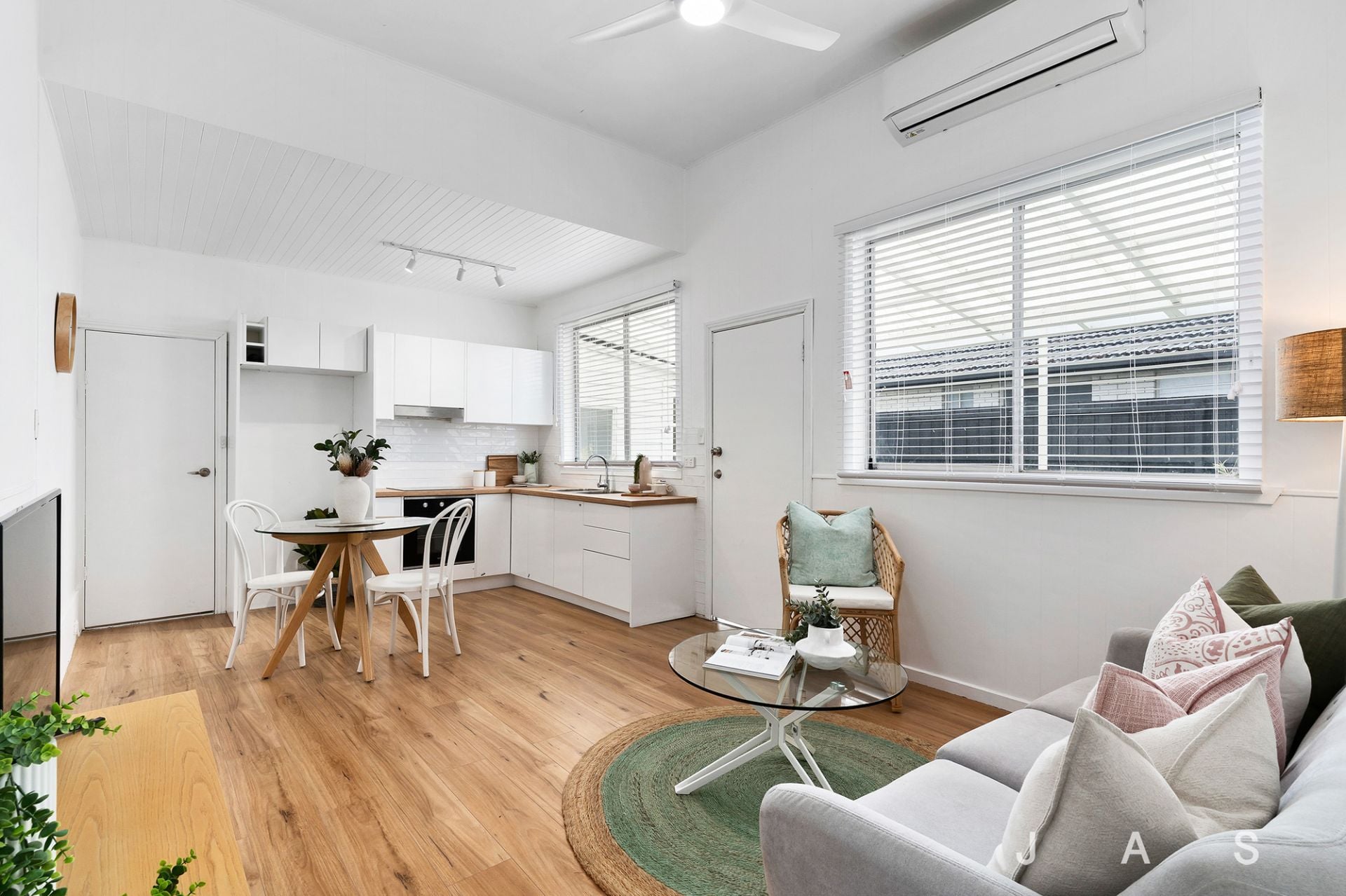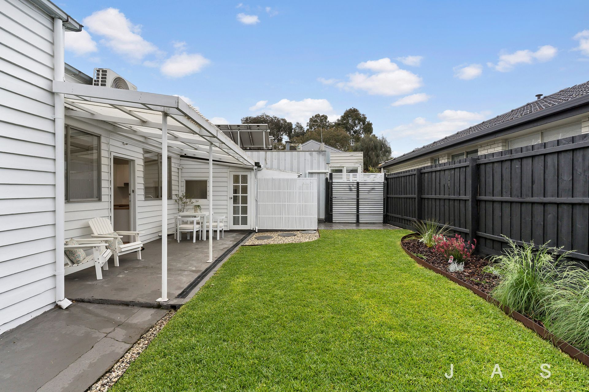 Step inside to be greeted by an elegant arched entry hall sweeping past two carpeted bedrooms before reaching the sunny open-plan area, where engineered timber floorboards underscore dining and lounge zones joined by a stylish timber-topped kitchen. The super-sized bathroom/laundry boasts classic contemporary styling, an enclosed toilet and a luxurious rainfall shower, while electric panel heaters and a split-system ensure your constant comfort. Outside a covered patio invites you to dine and entertain alfresco, while the spacious gives kids and pets an ideal outdoor play space to enjoy.