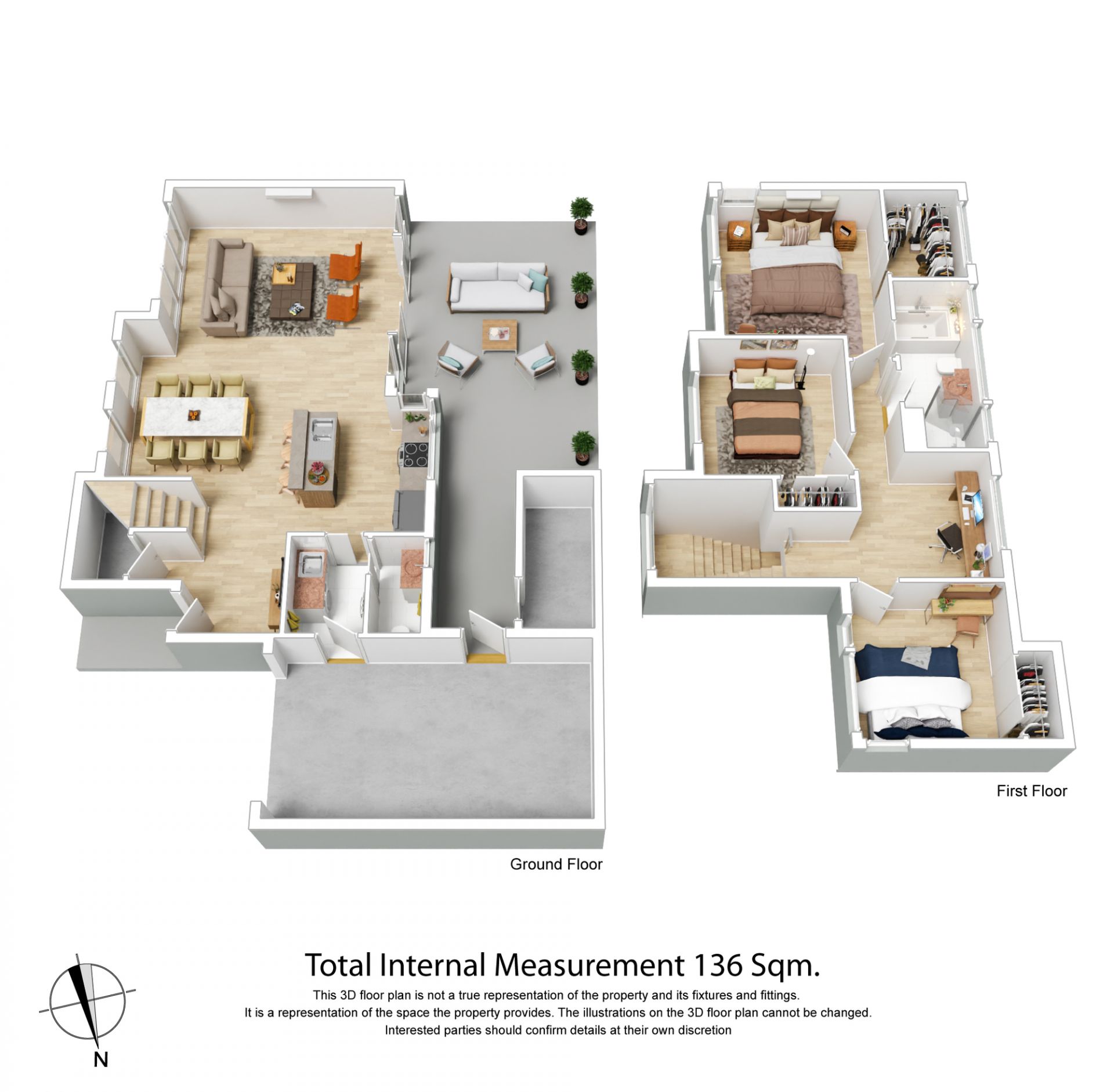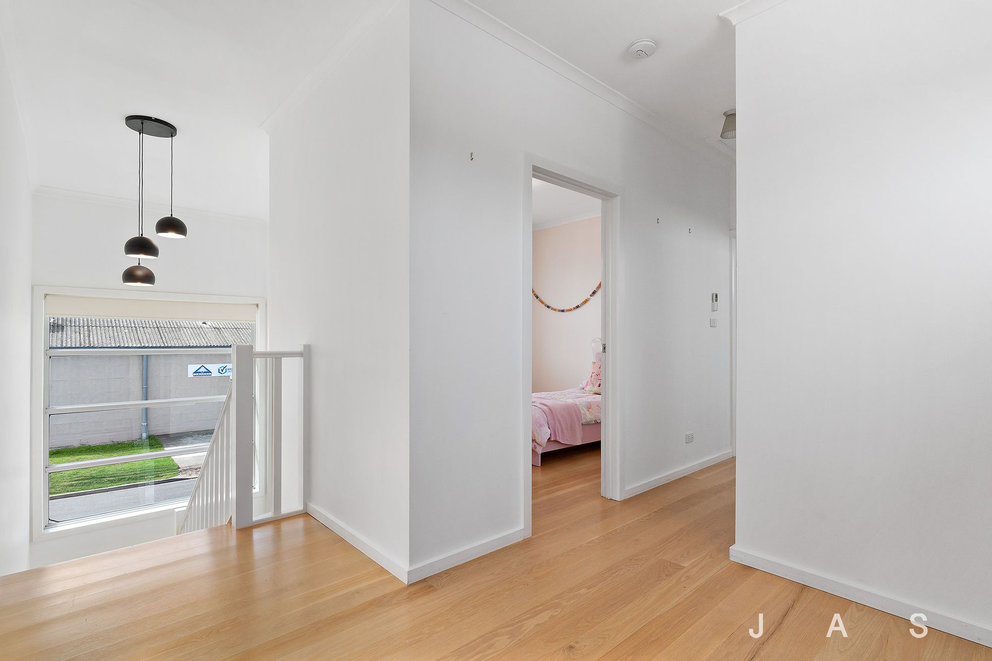 Three bedrooms offer inviting retreats, with two equipped with built-in robes and the generous master boasting a walk-in robe and ensuite access to the family bathroom, which is ideally complemented by the guest powder room adjoining the walk-in laundry on the lower level.