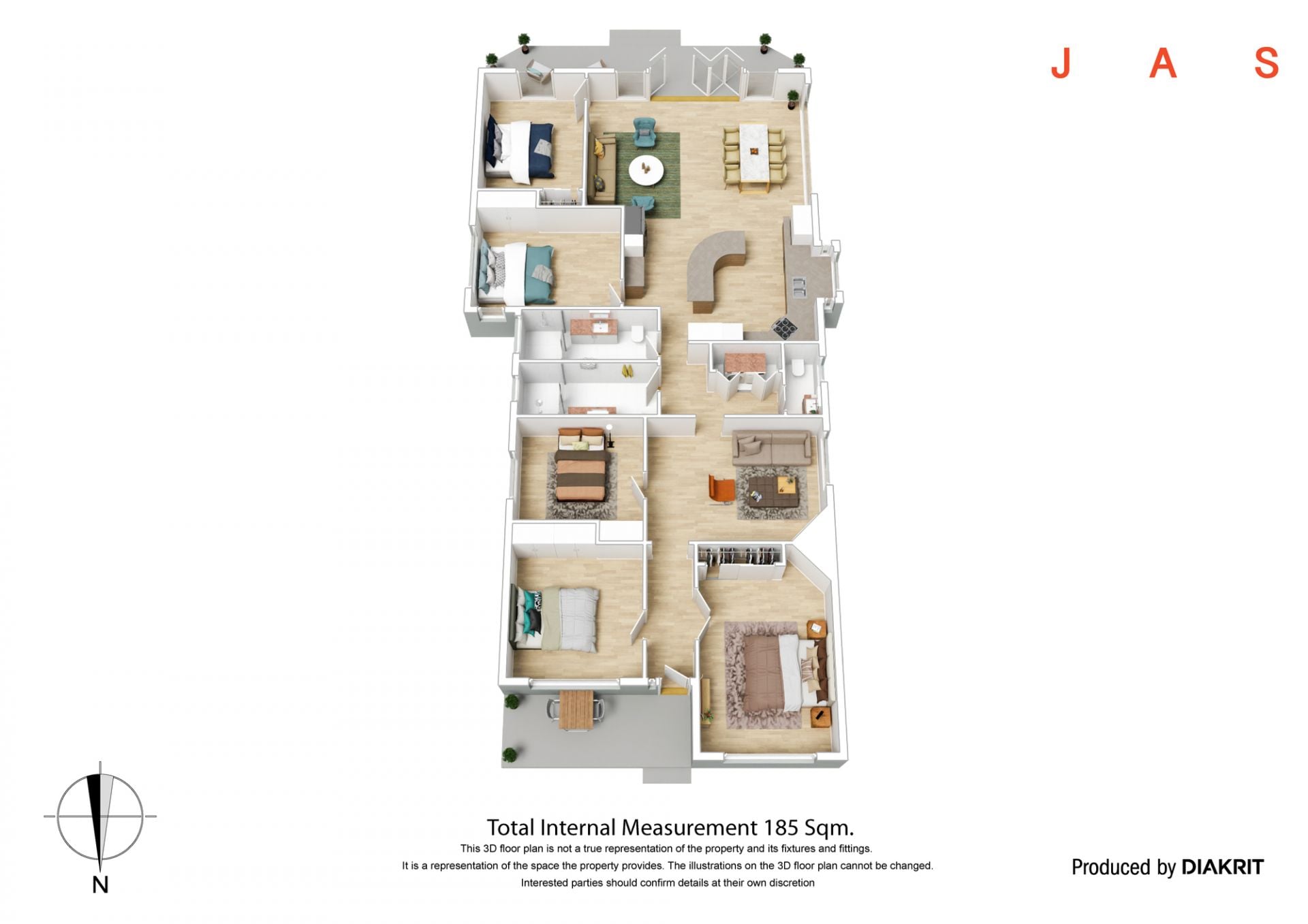 • Five bedrooms with built-in robes, including a spacious master with front garden outlook