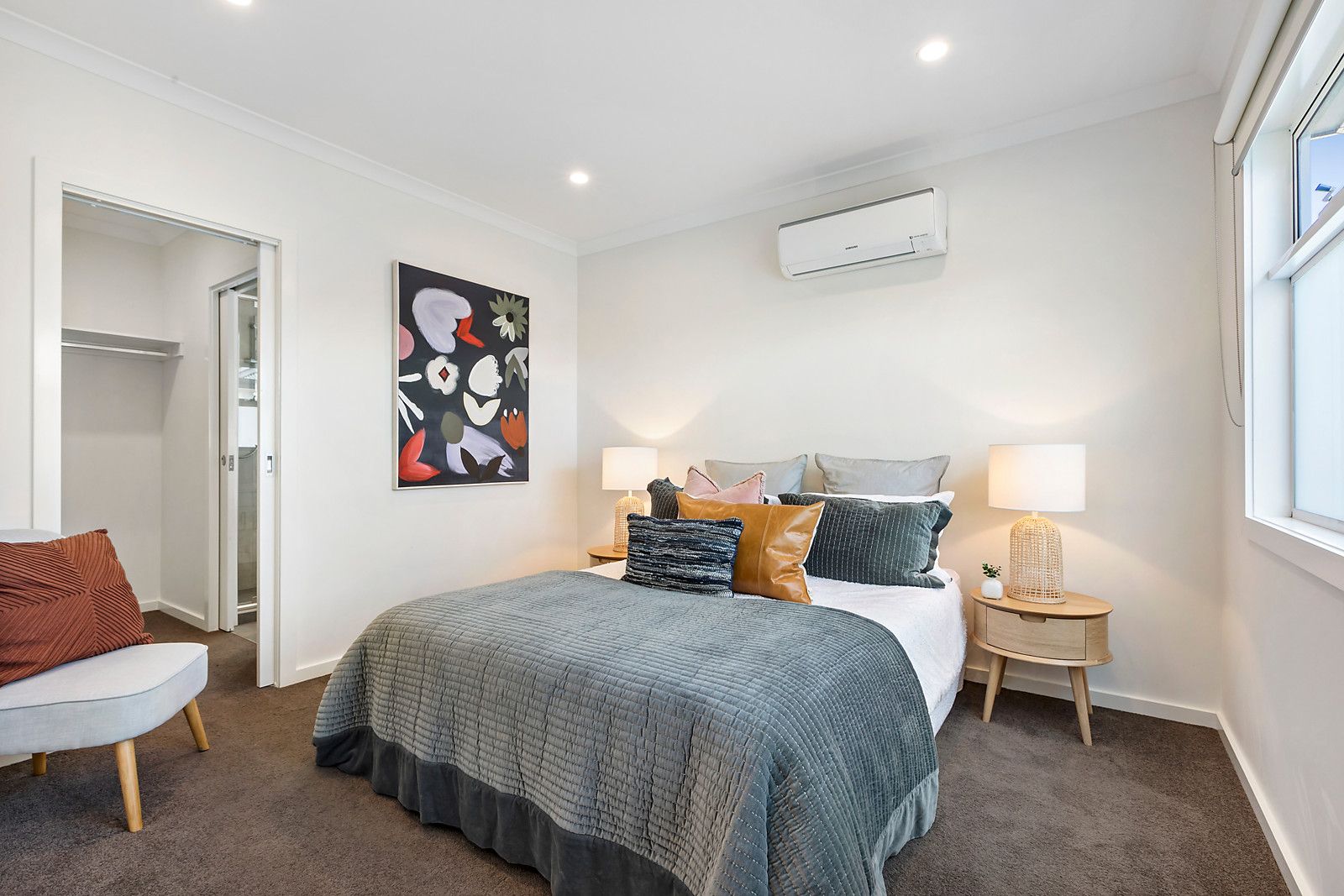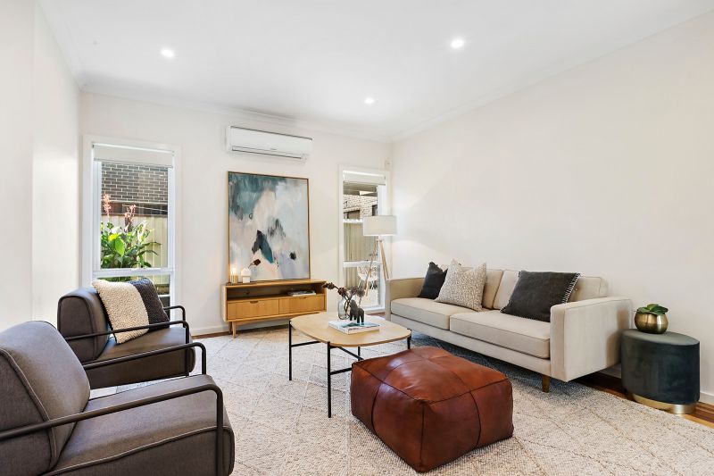 Defined by a design that makes modern life easy, this dynamic three bedroom, two bathroom townhouse provides a series of scintillating spaces complemented by quality fittings and flawless presentation. Downstairs areas for living and dining feature, an open-plan kitchen, while sliding doors reveal a large courtyard created with low-maintenance convenience in mind. Individual heating/cooling in each room. Secure garaging for two cars. Close to Hansen Reserve, Kingsville Kindergarten, primary schools and public transport options.