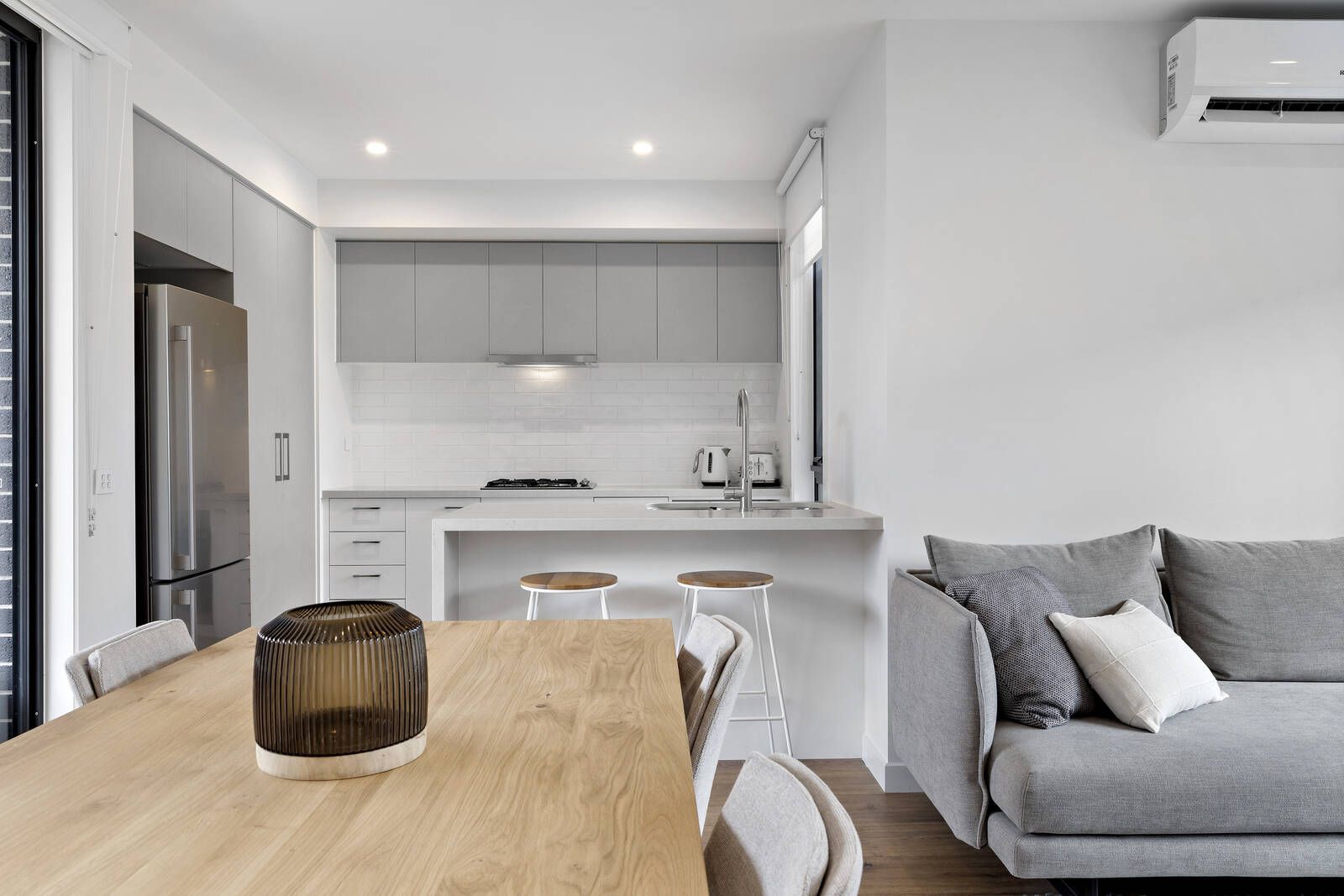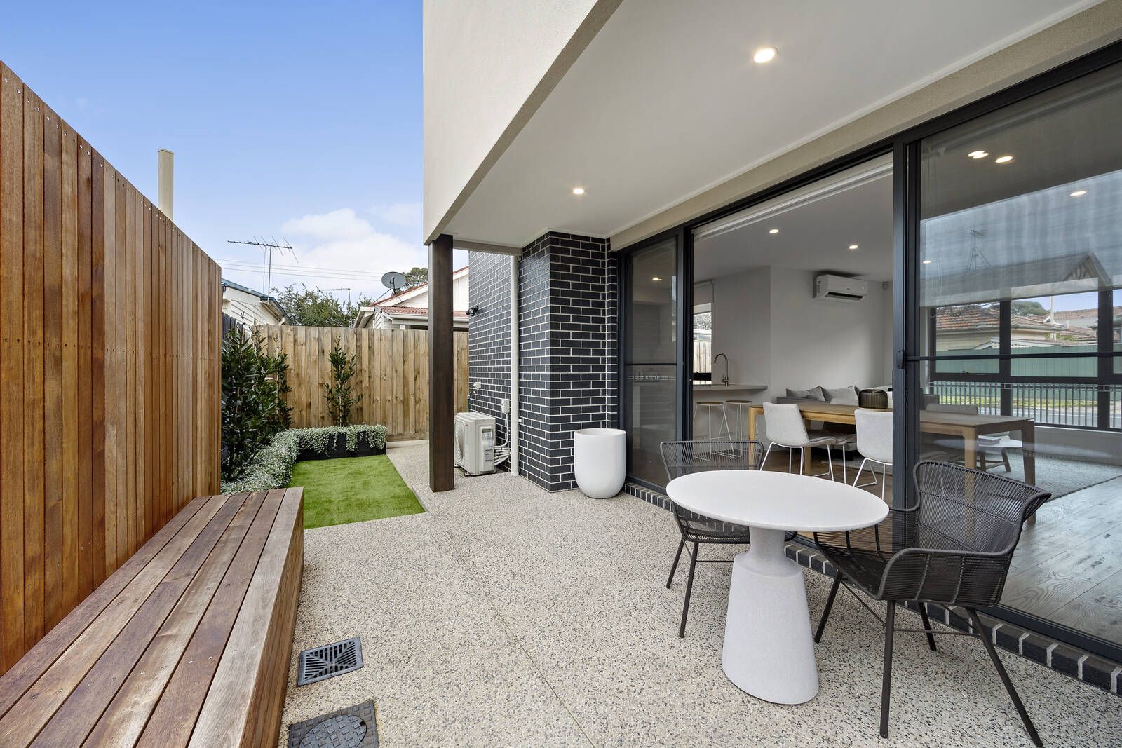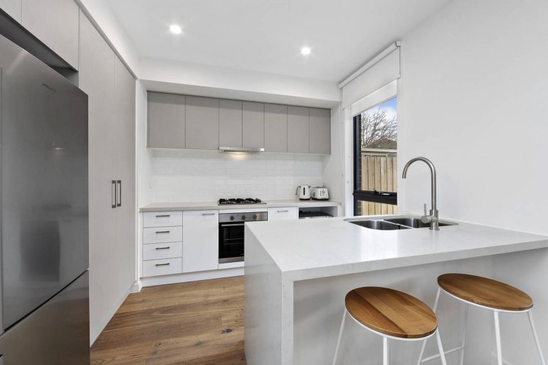 A new approach to a great address, this dynamic, desirable residence applies all today’s finest ideas in a location that’s a central sensation! Downstairs living and dining areas that link seamlessly to a refined, north-facing outdoor retreat instantly convey a level of luxury that’s complemented by the open-plan kitchen’s fittings and finishes while the presence of a bathroom on both ground floor and upstairs levels illustrates the intelligence of this superb two bedroom design. Lots of light, heating/cooling, clever storage, elegant landscaping and off-street parking further enhance this distinctive home, literally moments from friendly parks, fantastic cafes and the best of Barkly Street.