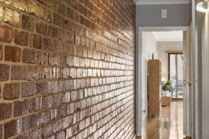 Exceptional exposed red brick at your doorstep and down the hallway welcomes you home and waves goodbye.