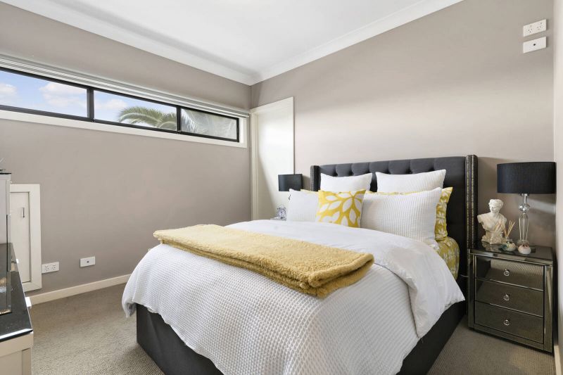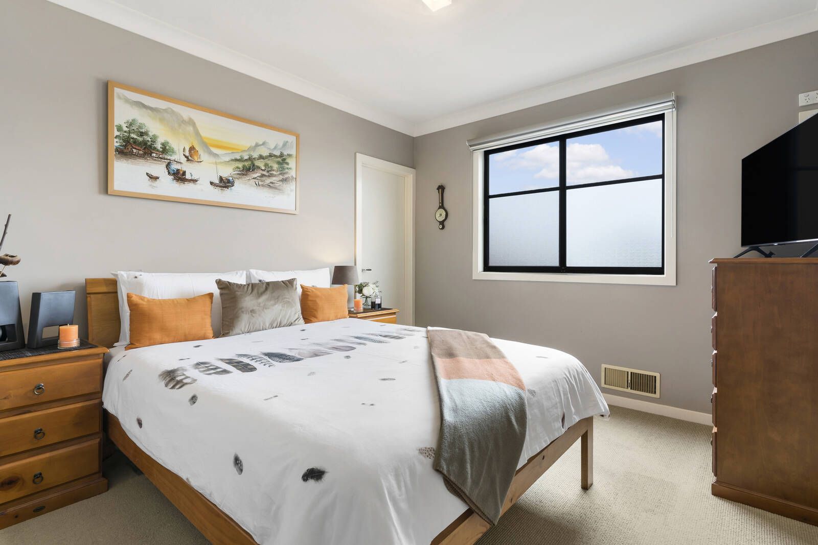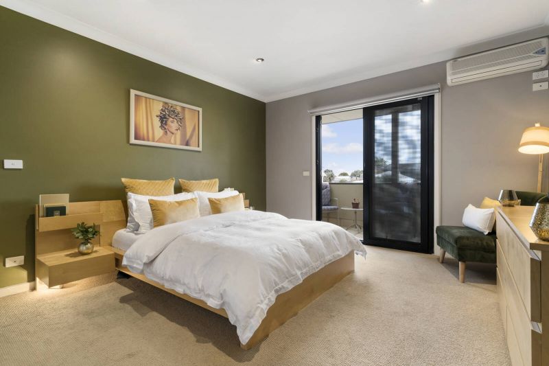 Above, a king main bedroom with a walk-in robe, ensuite and balcony is accompanied by 2 further double bedrooms, each with its own walk-in robe, and the central main bathroom. Spacious, stylish, kept beautifully comfortable by ducted heating and cooling, this home matches modern luxury to low-maintenance ease.