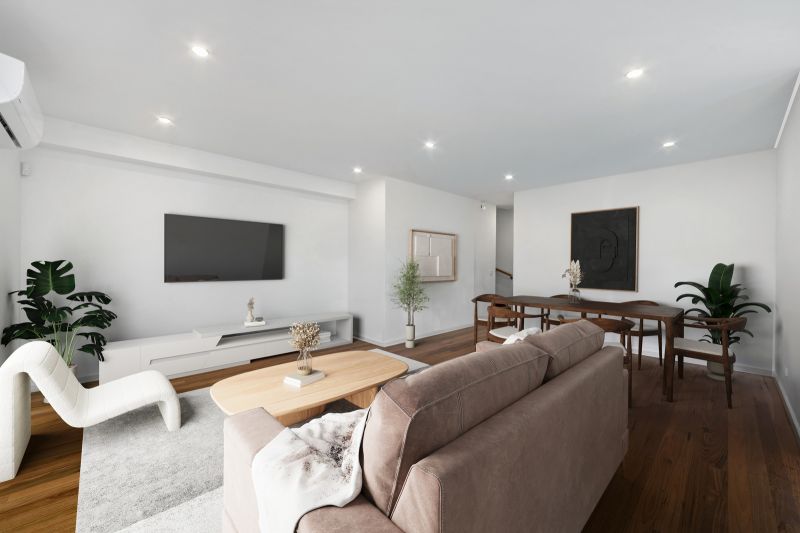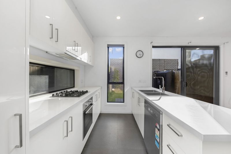 Beautiful, polished timber floorboards sweep through the lower level, offering a large bedroom/study ideal for those working from home and sunny open-plan living offering plenty of room to move. The stunning all-white kitchen is highlighted by stone benchtops and stainless-steel appliances, with a breakfast bar overlooking the generous living/dining space. Sliding doors open to the alfresco entertaining deck and neat back garden offering idyllic outdoor living and a safe play space for pets and children.