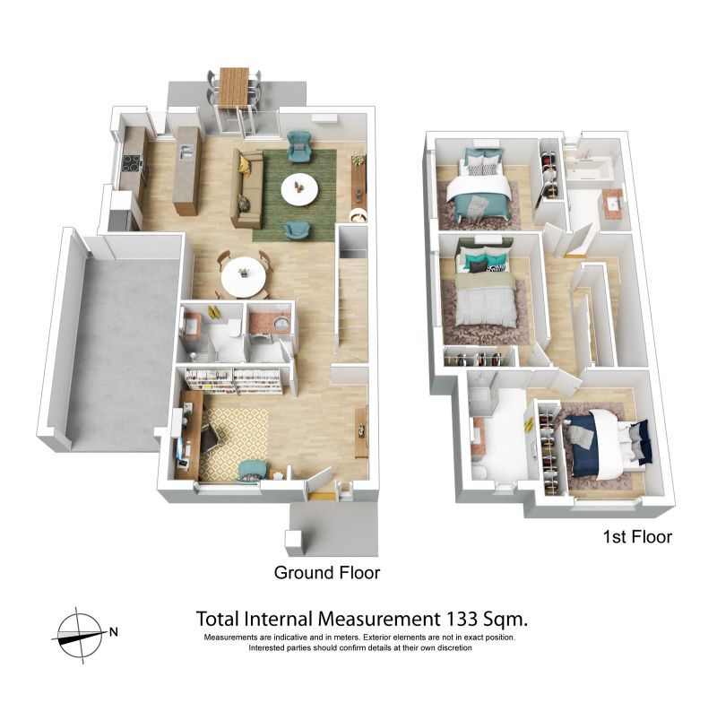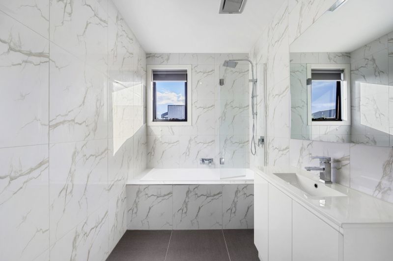 Upstairs, inviting bedrooms with built-in robes include a large master suite offering a generous ensuite. The two additional upstairs bedrooms share the main bathroom boasting a full-sized bath with a luxurious overhead rainfall shower, ideally complemented by the guest bathroom on the lower level for total convenience.