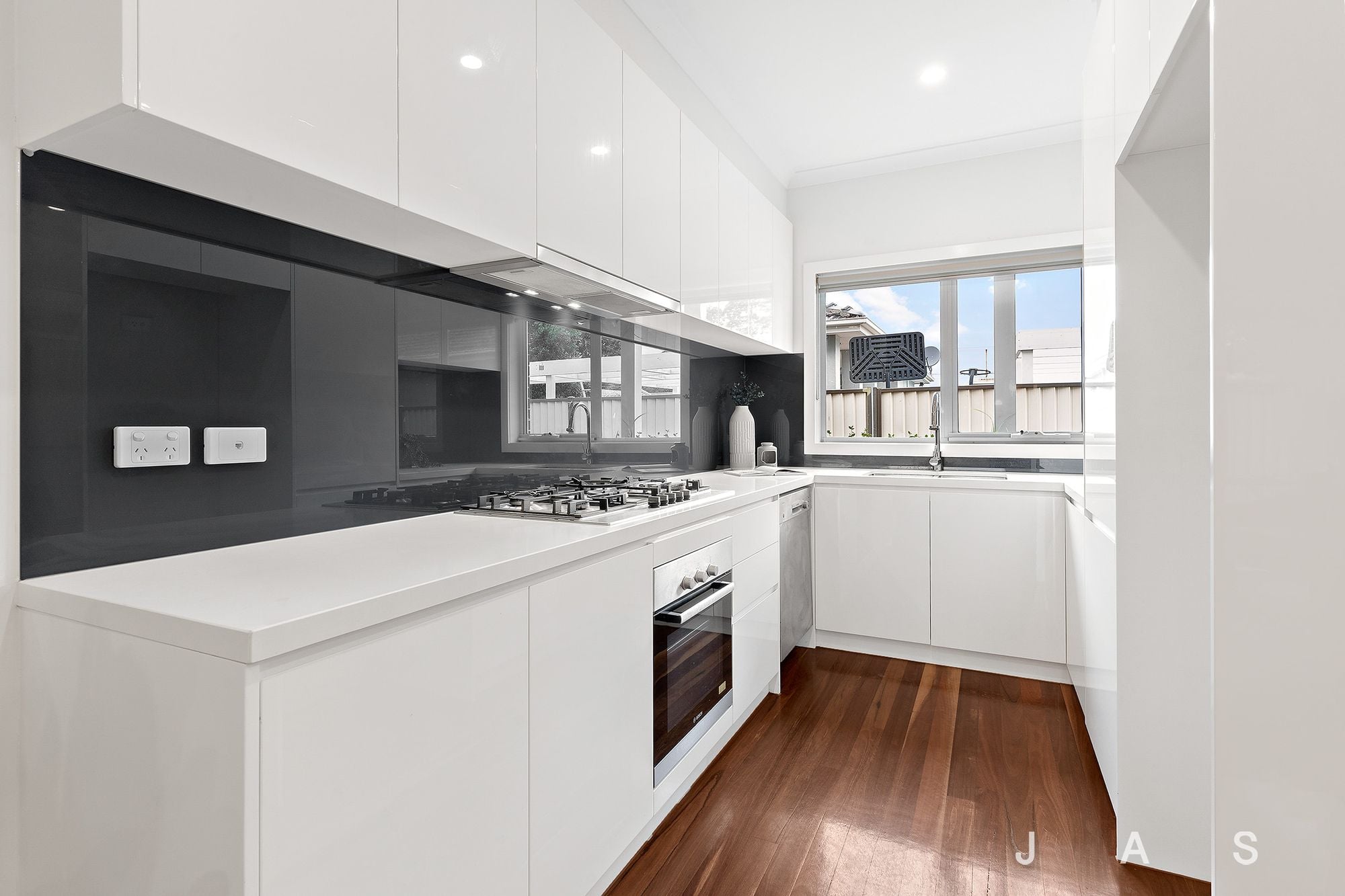 The lower level delivers spacious open-plan living elevated by gleaming polished timber floorboards and split-system heating and cooling. Generous living and dining zones are joined by a well-appointed kitchen boasting stone benchtops and stainless steel appliances while sliding doors create an effortless connection to the alfresco entertaining patio and private back garden.