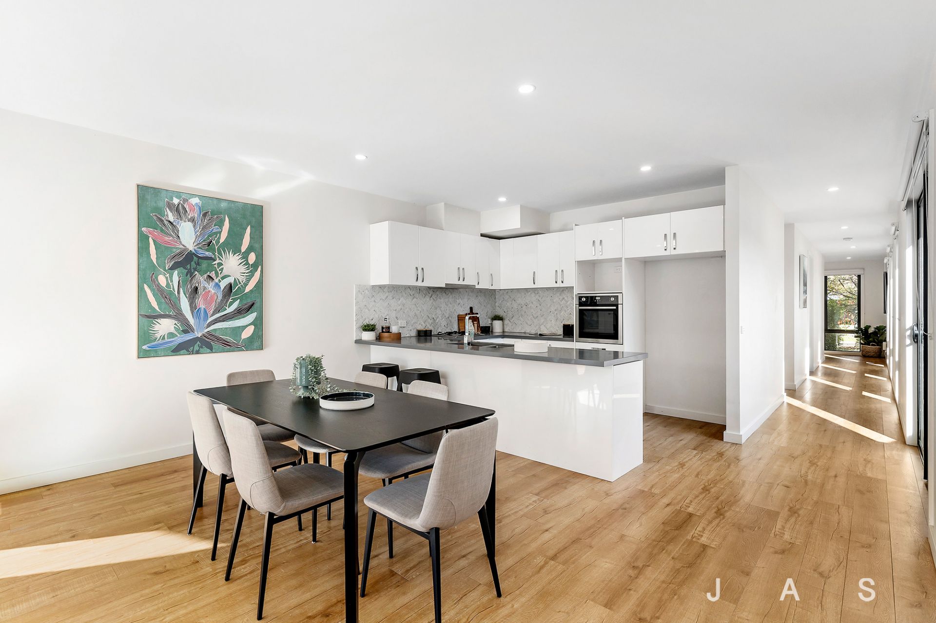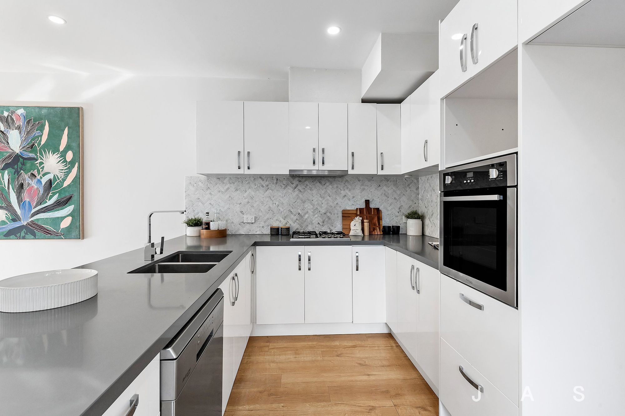 Step inside to be greeted by stunning engineered timber floorboards running the length of the hallway to the sunny open-plan living area. Spacious lounge and dining zones are accompanied by a beautifully appointed kitchen boasting sleek stone benchtops, stylish herringbone tiling, a walk-in pantry and breakfast bar. Sliding doors invite you to dine and entertain alfresco on the north-facing patio, while the neat-as-a-pin garden beyond offers a safe play space for kids and pets.