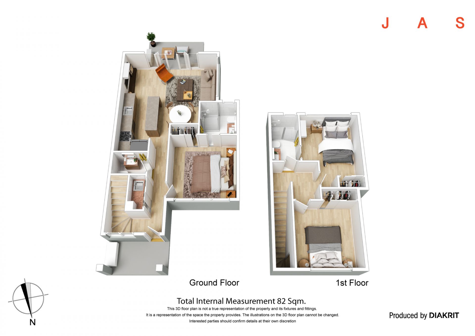 Upstairs a second bathroom and two additional bedrooms await, with one enjoying direct bathroom access for an ensuite experience.