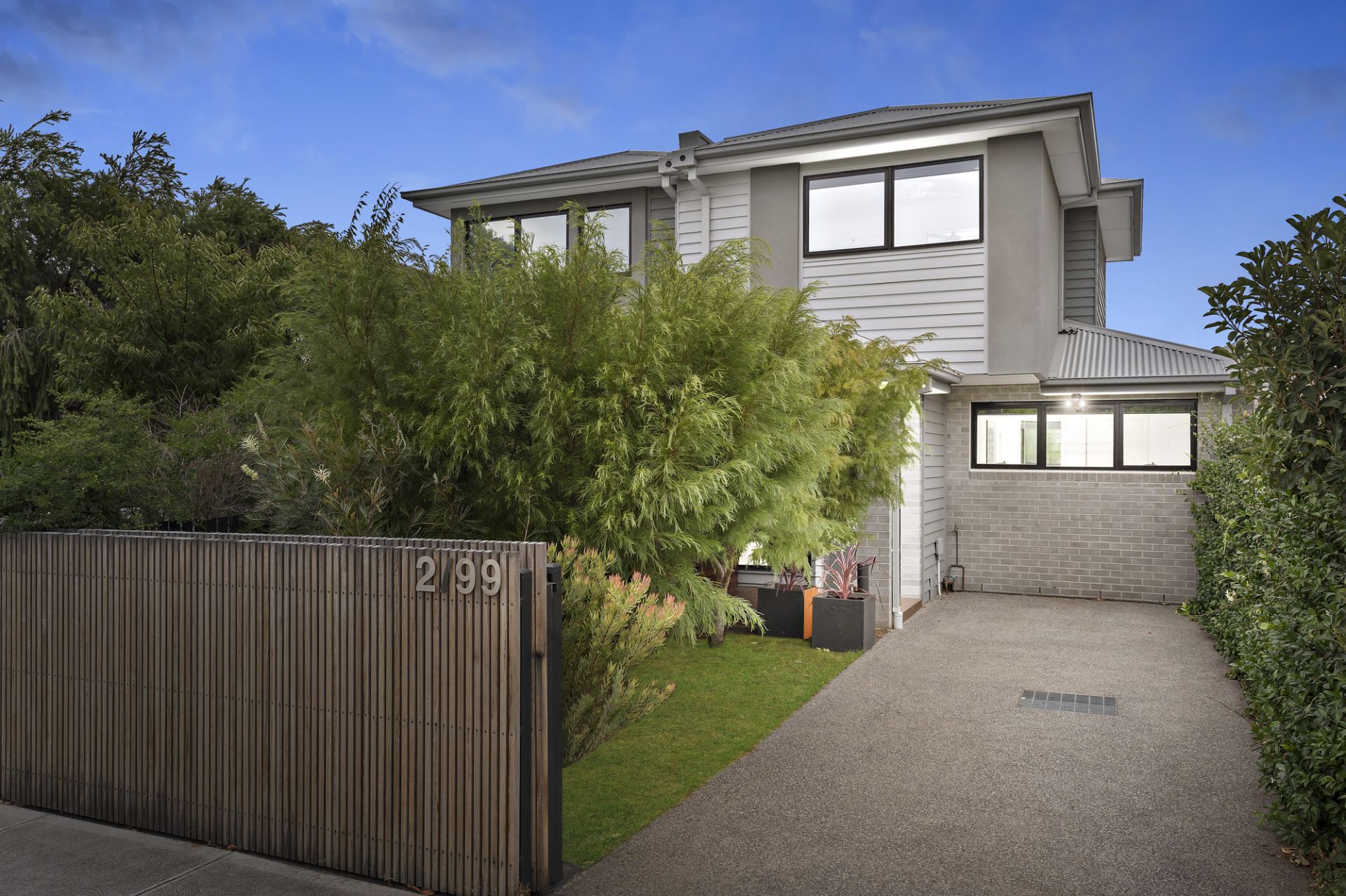 A spacious front garden welcomes you home as you park your car securely in the gated driveway, with the covered front porch offering a lovely spot to sit and enjoy the home’s sunny north-facing aspect.