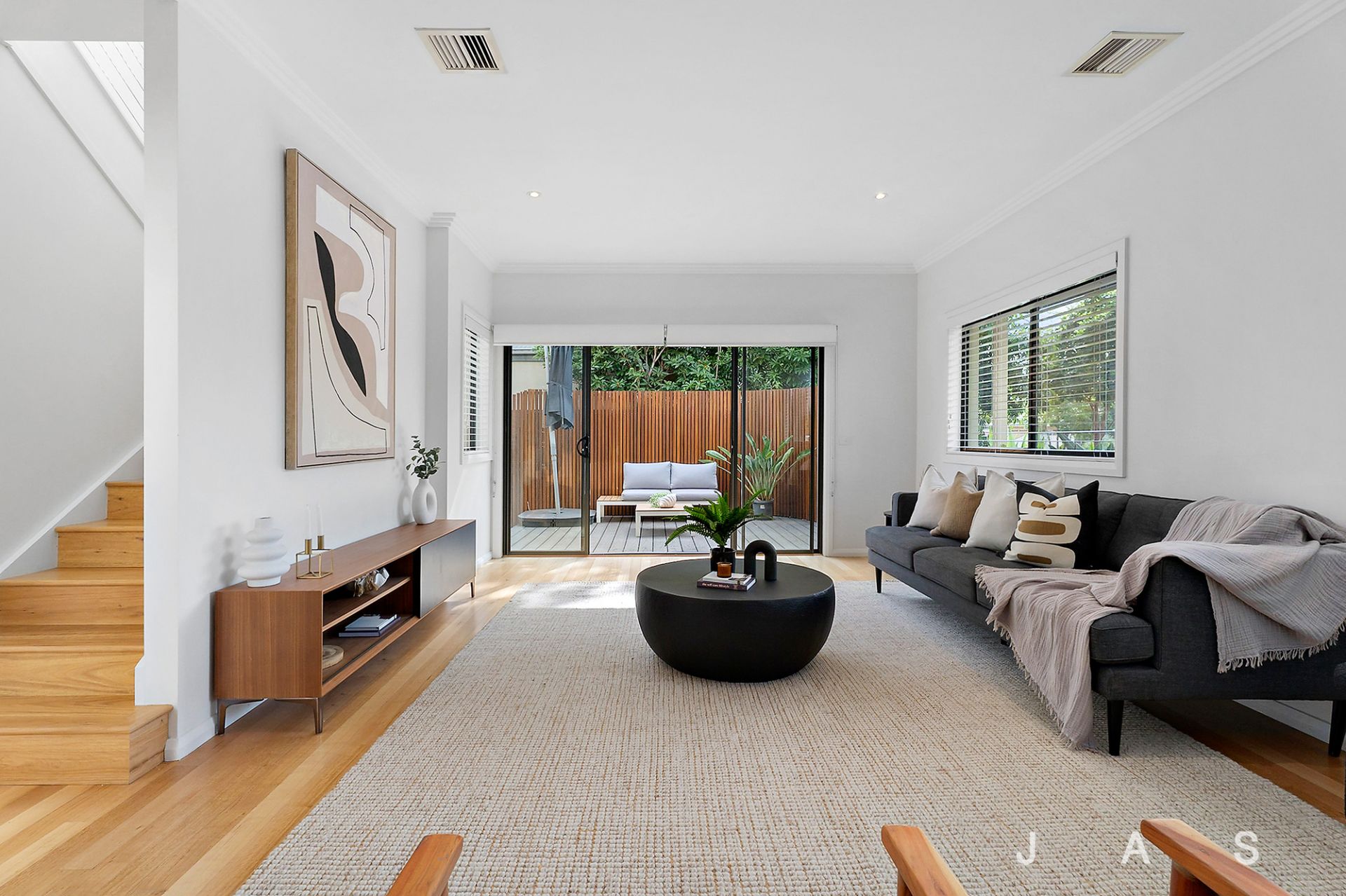 Sliding doors invite you to dine and entertain outside on the deck, with its perfect north-east facing aspect ensuring all day sunlight and natural warmth. The courtyard beyond is beautifully paved for low-maintenance and fringed with lush garden beds bursting with greenery.