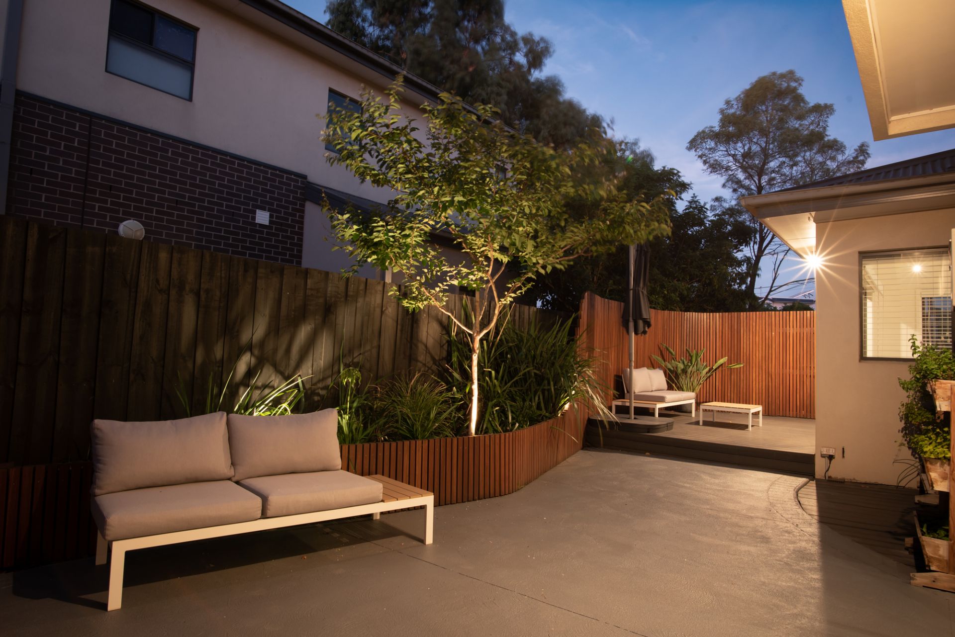 • Superb deck and leafy, low-maintenance courtyard designed for entertaining