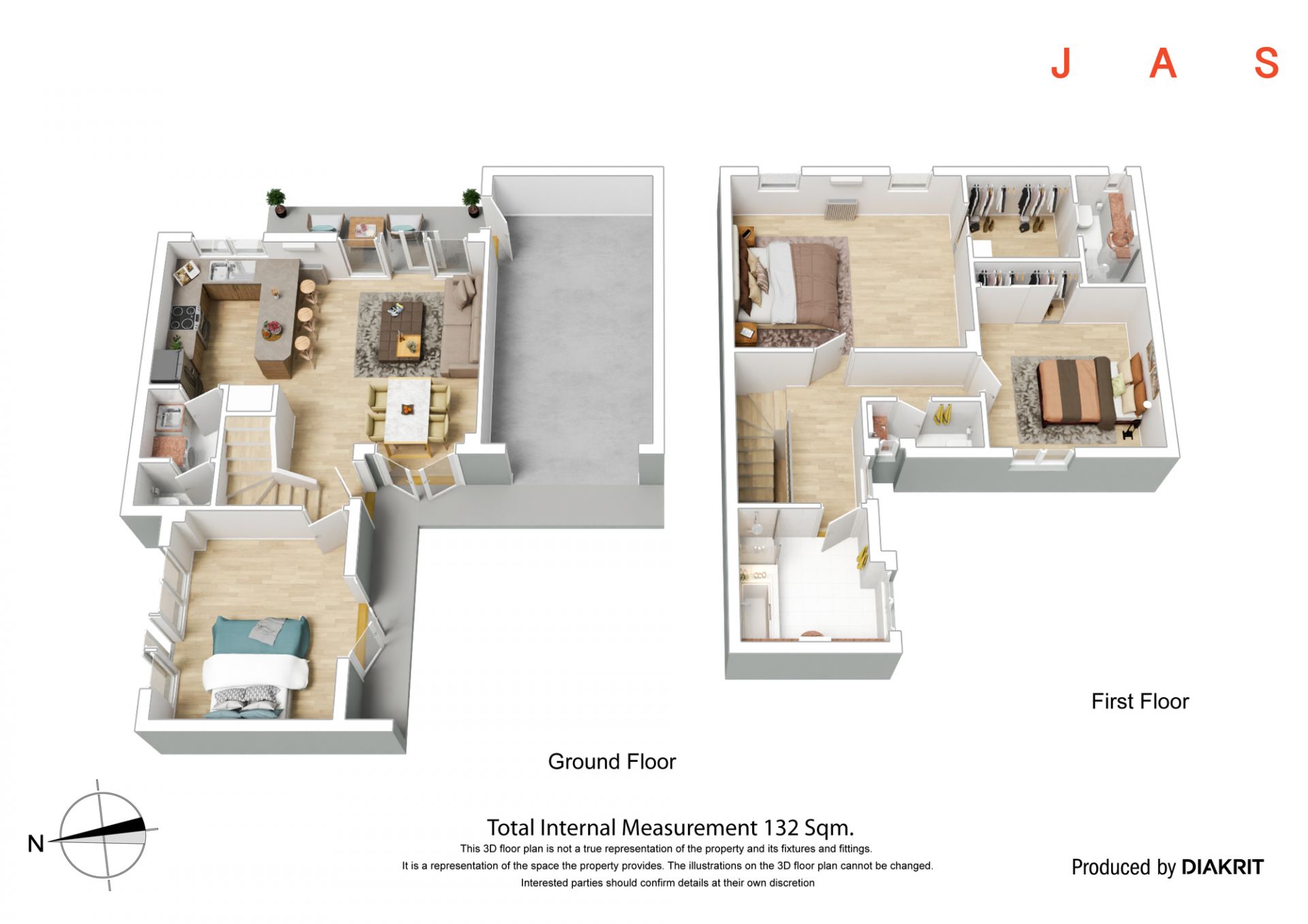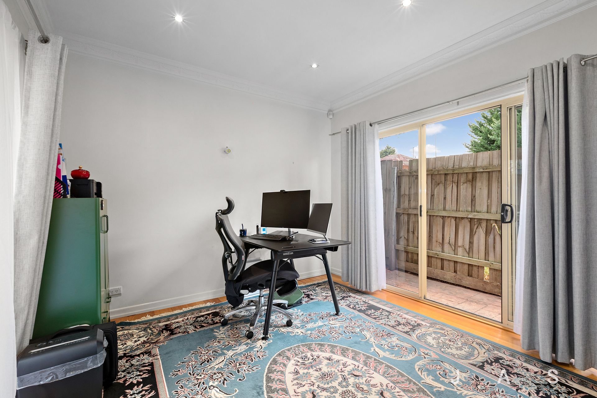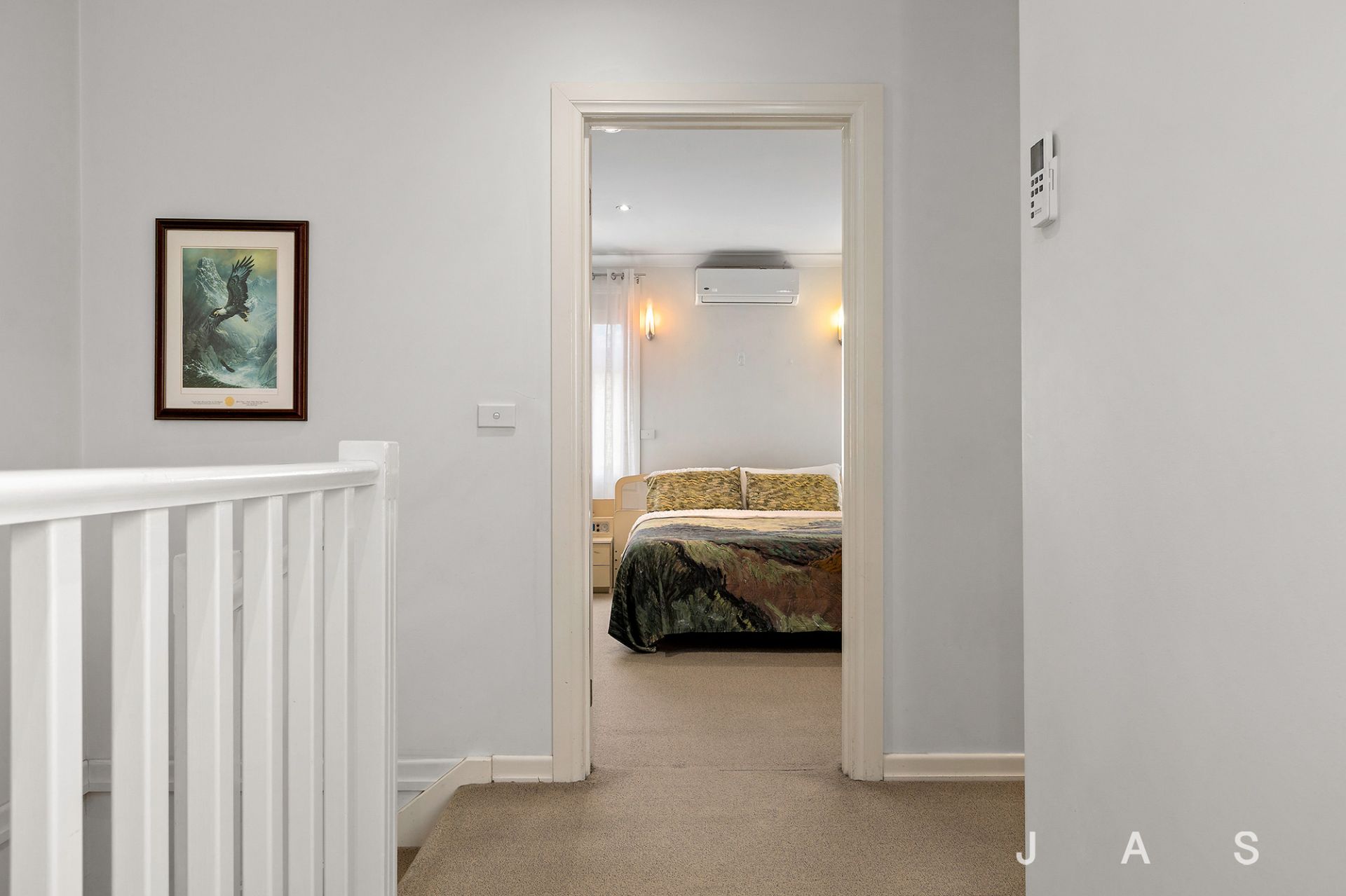 Perched on the upper level are two inviting bedrooms. The oversized master bedroom is a spacious retreat, offering the convenience of a walk-in robe and a private ensuite, while the second bedroom enjoys a built-in robe and exclusive use of the main bathroom and separate powder room. A third bedroom awaits downstairs, with its independent entry and direct outdoor access making it also ideal for use as a generous home office.