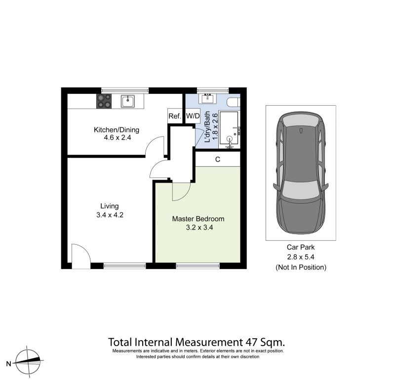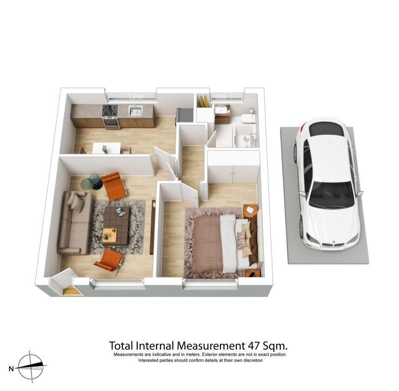 • One generous bedroom with a built-in robe