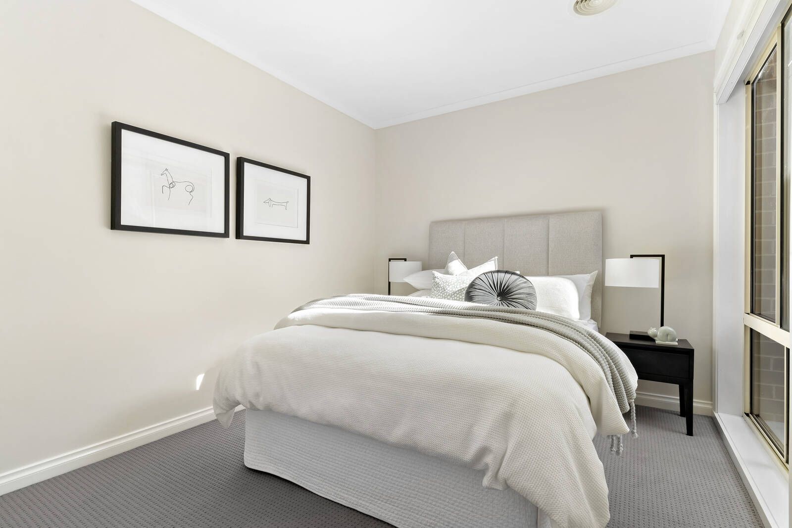 A light-filled main bedroom with a walk-in robe and direct access to the semi ensuite bathroom leads to two further bedrooms, both with a courtyard aspect. Beyond, a living/dining area of generous proportions is complemented by a sky-lit, open-plan kitchen and outlooks across the brick paved pergola and alfresco backdrop.