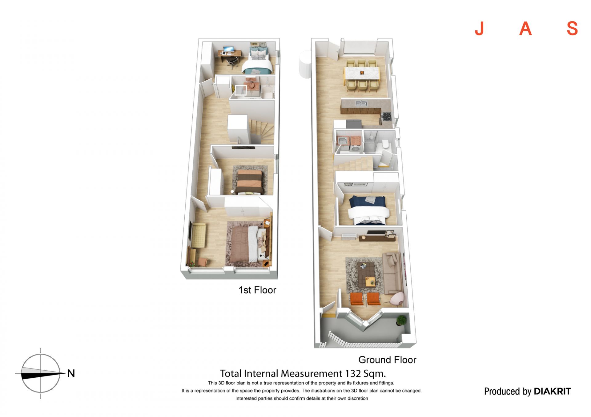 Upon entering, the ground floor opens up to a large living area followed by central bedroom/study, before leading past a grand staircase, bathroom/laundry and out to a bright kitchen and dining area at the rear.