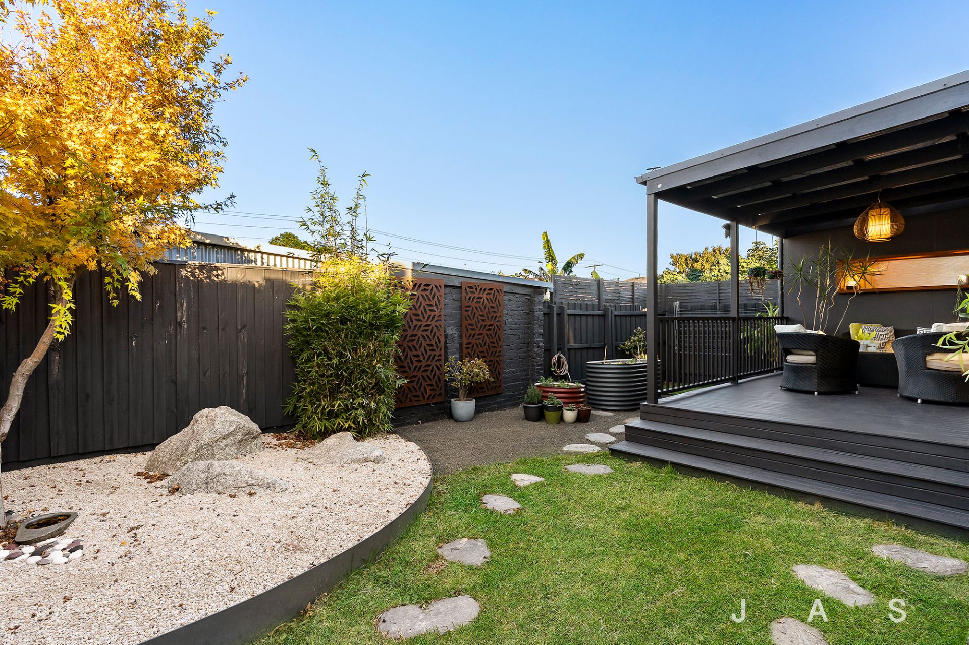 • An inviting back garden combines Japanese aesthetics with kitchen-garden practicality