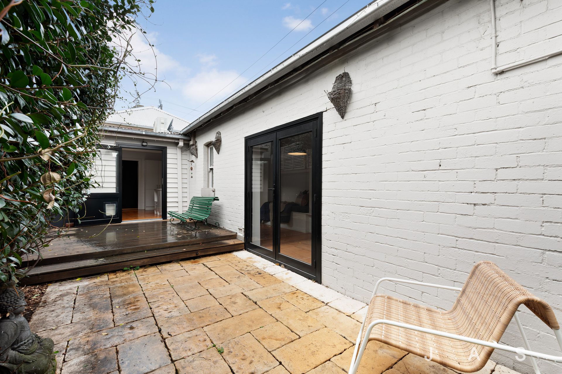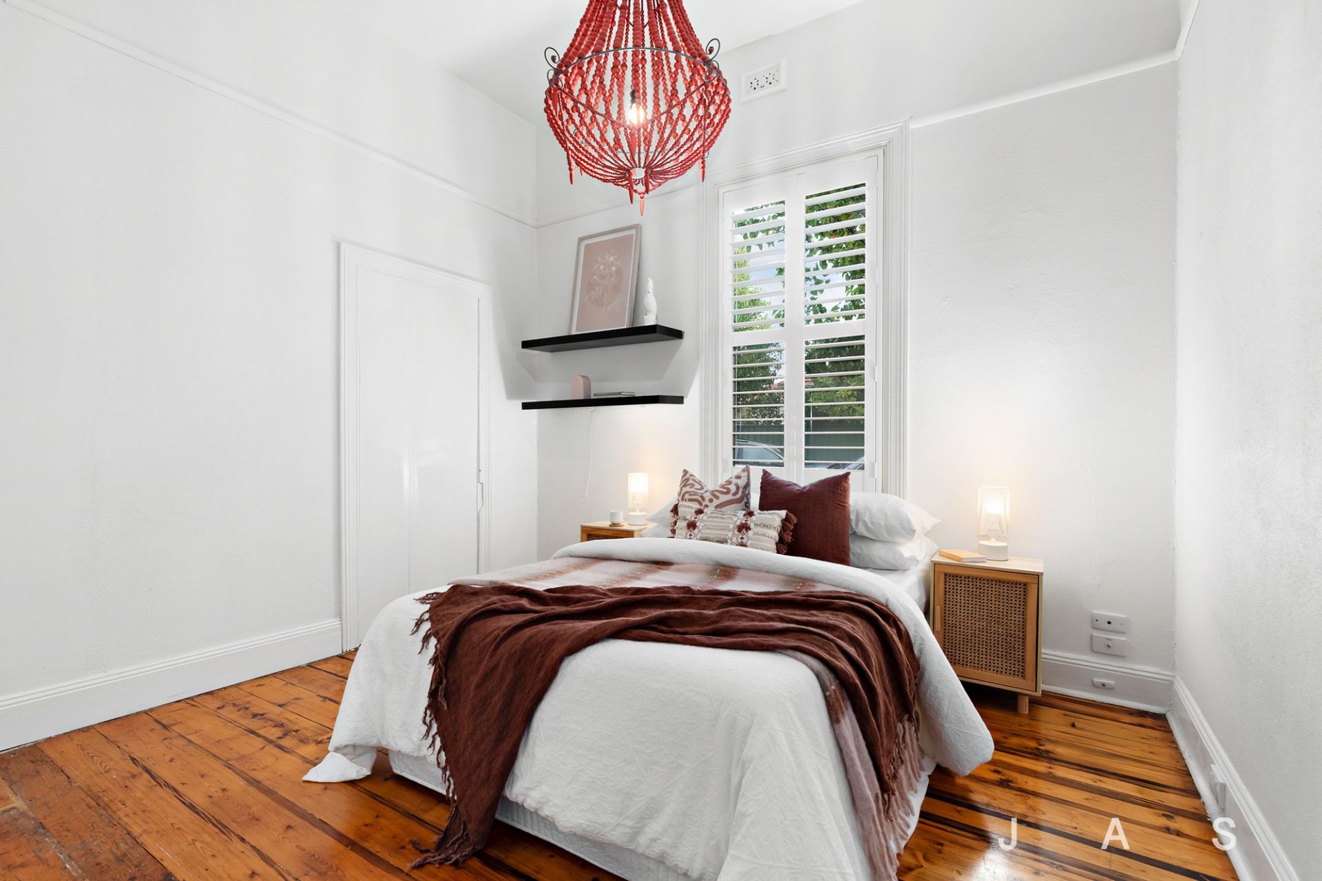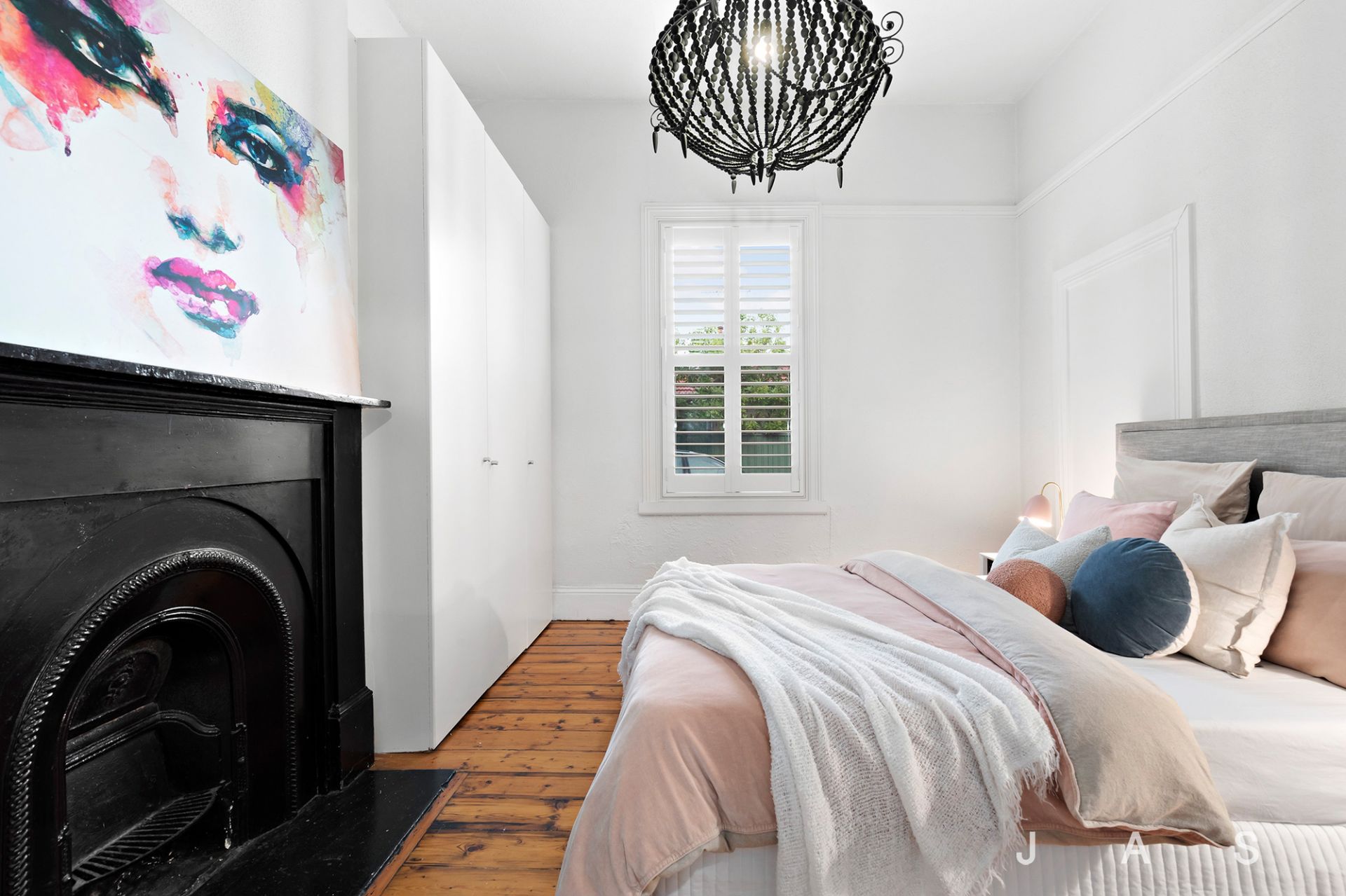 When it’s time to rest, three bedrooms offer inviting retreats. A spacious haven at the rear of the home enjoys a private ensuite, direct outdoor access and in-built storage and twin beds, making it an ideal retreat for siblings to share. The two additional bedrooms include a master with in-built robes flanking a stunning period fireplace, while the centrally positioned main bathroom offers floor-to-ceiling tiling and a bath with overhead shower.