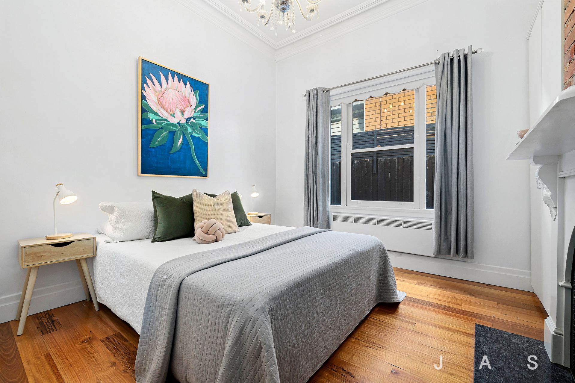 Step inside to be greeted by the elegant entry hall, inviting you past two generous bedrooms, where built-in robes flank stunning period fireplaces.