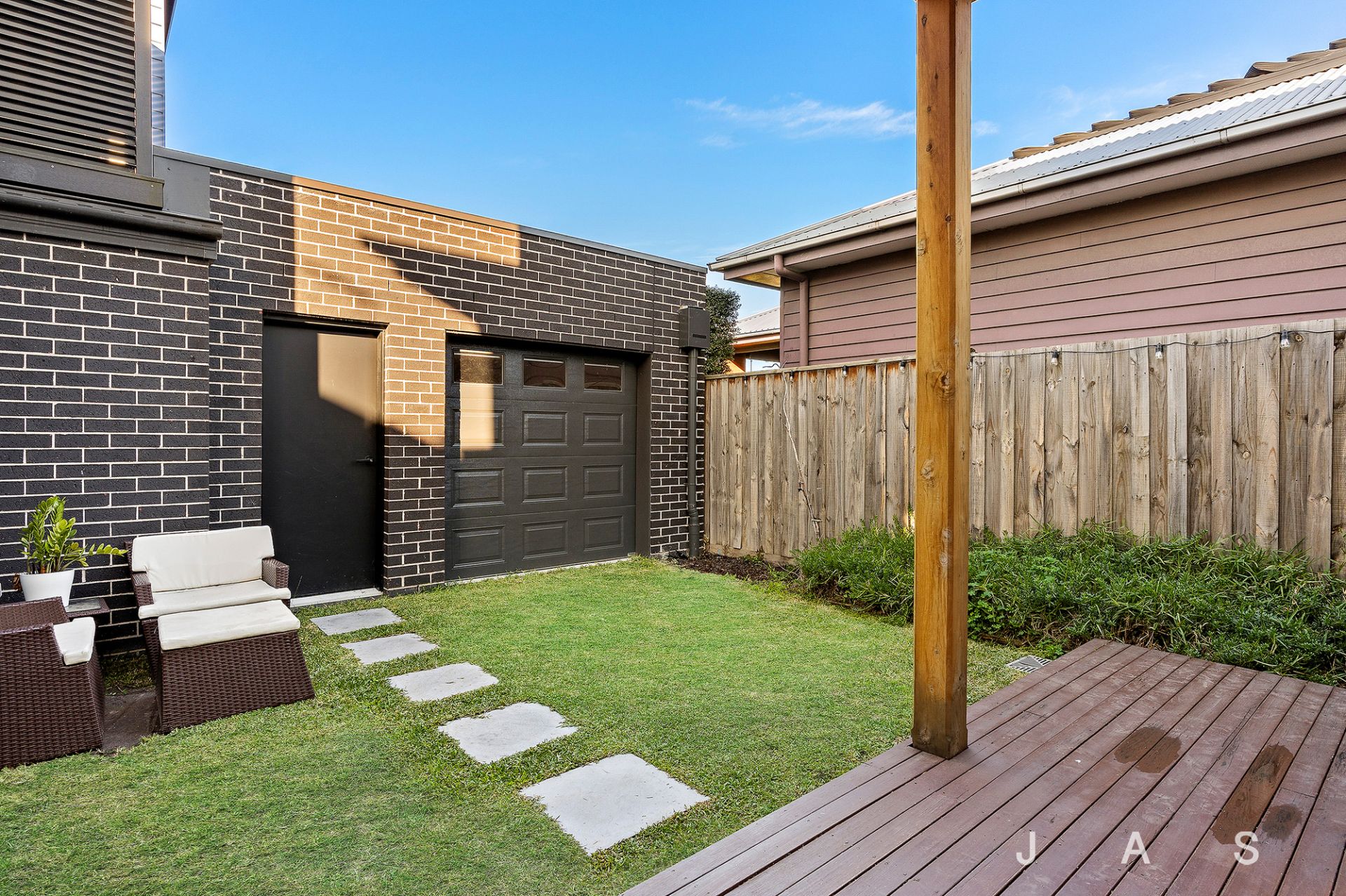 Folding glass doors invite you to step out to the entertaining deck and neat back garden, where you’ll enjoy family meals on warm summer nights and the kids will have plenty of space to play in the sunshine.