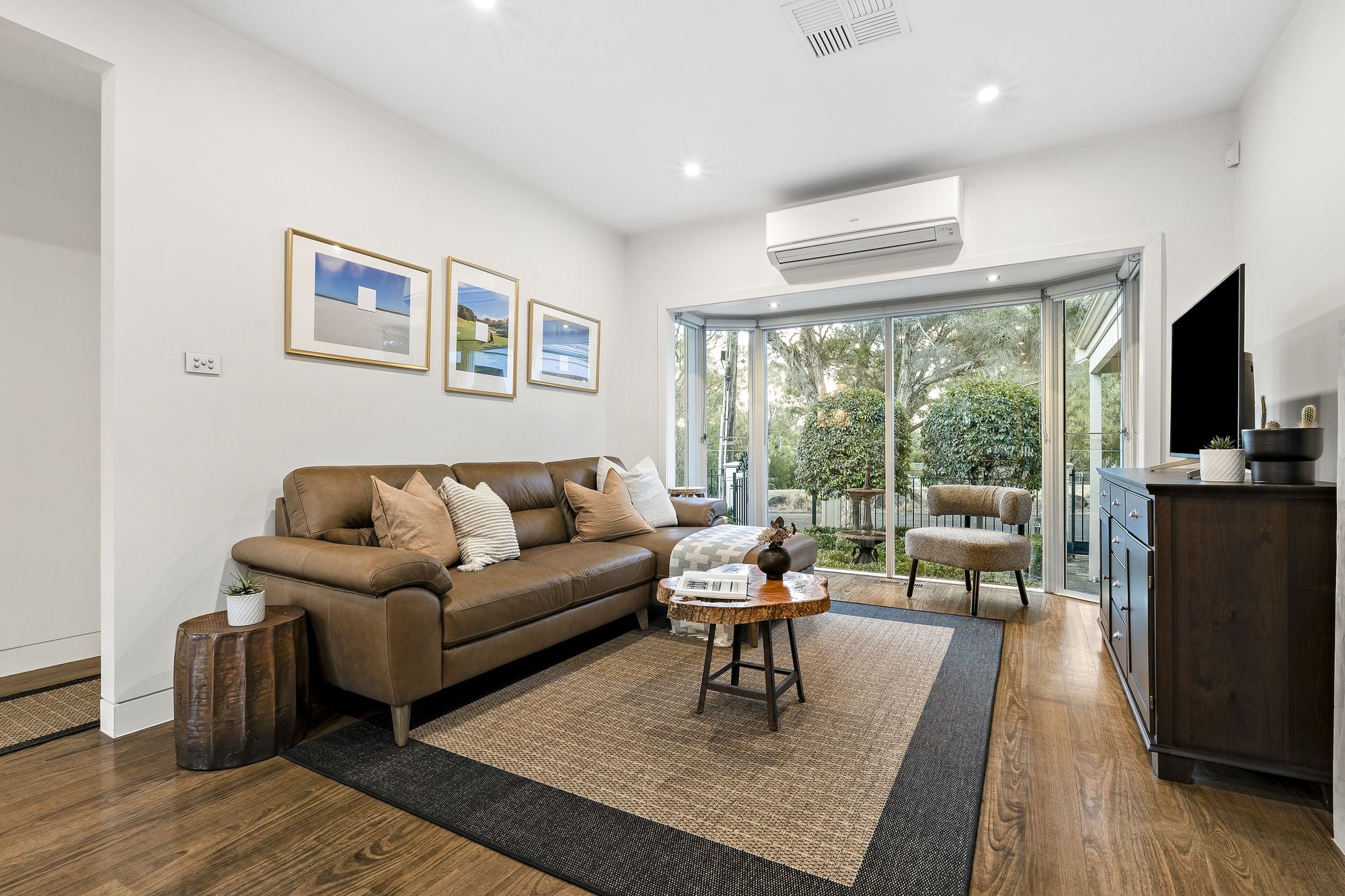 • Comfort assured with ducted heating/cooling, a gas fireplace, multiple split systems and quality floor coverings (hardwood/plush carpet).