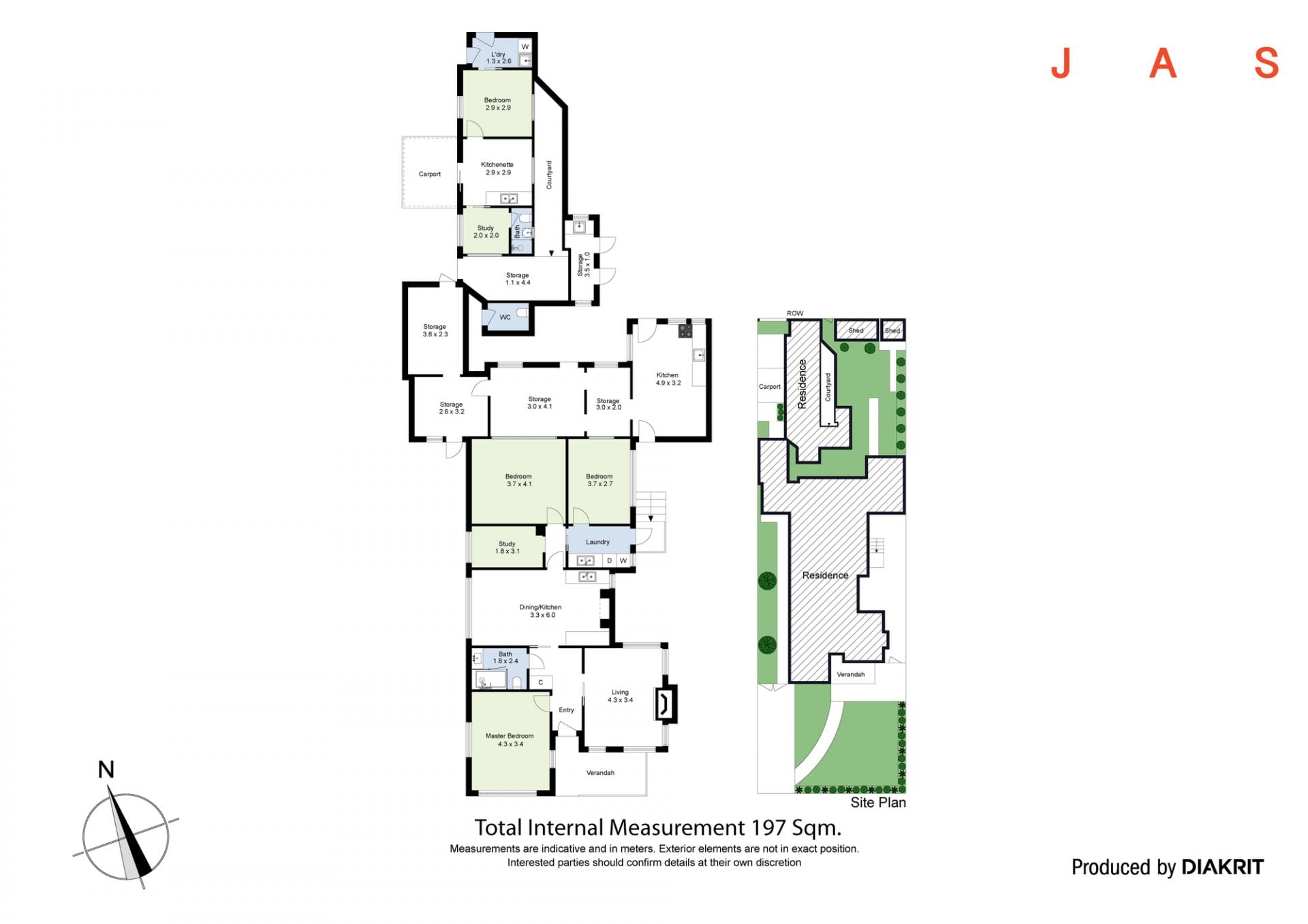 Offering a total of four bedrooms and two bathrooms, the house also boasts three kitchens, two laundries and two studies in addition to living areas and multiple storage rooms.