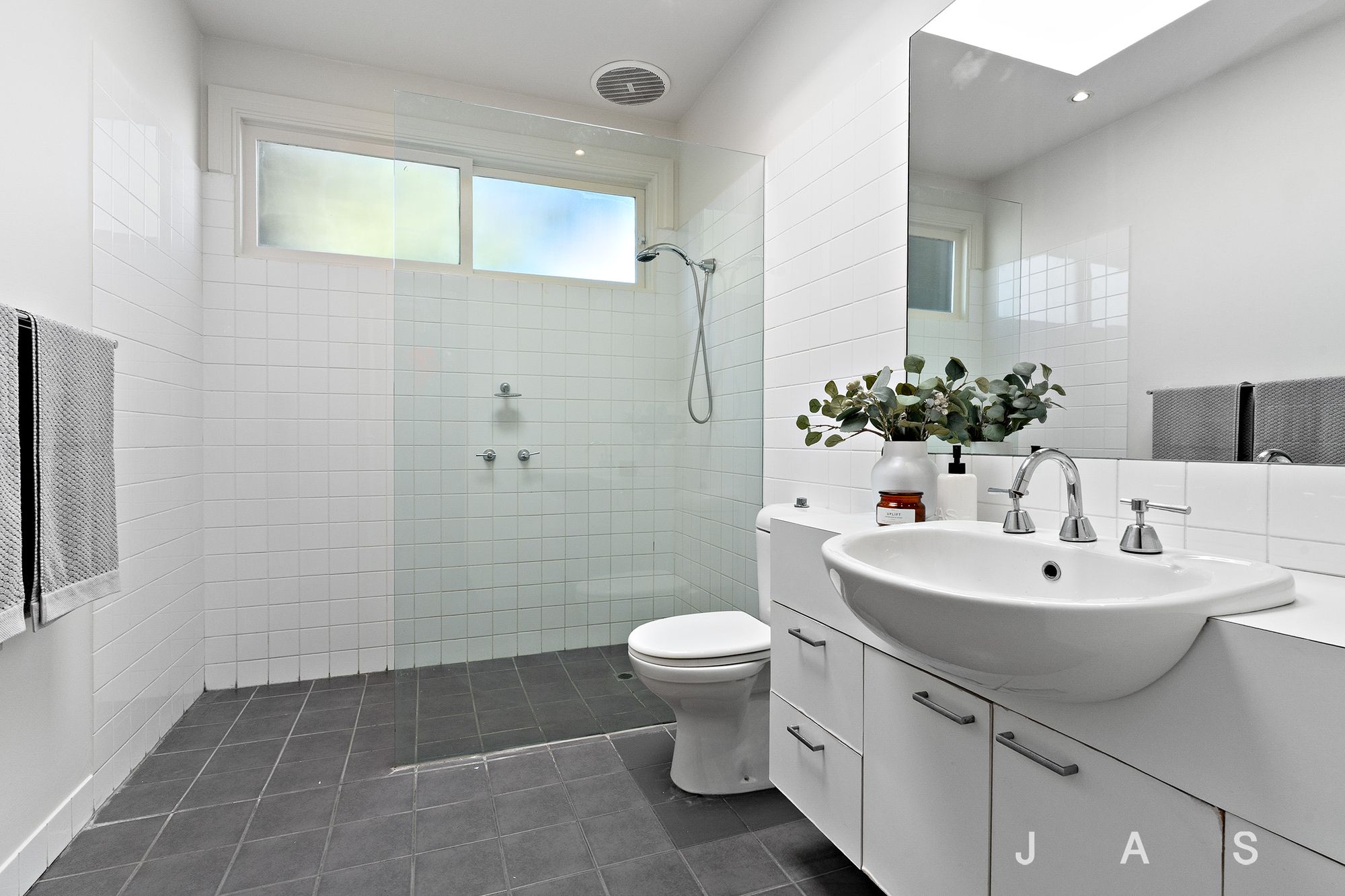 • Skylit bathroom + walk-in laundry