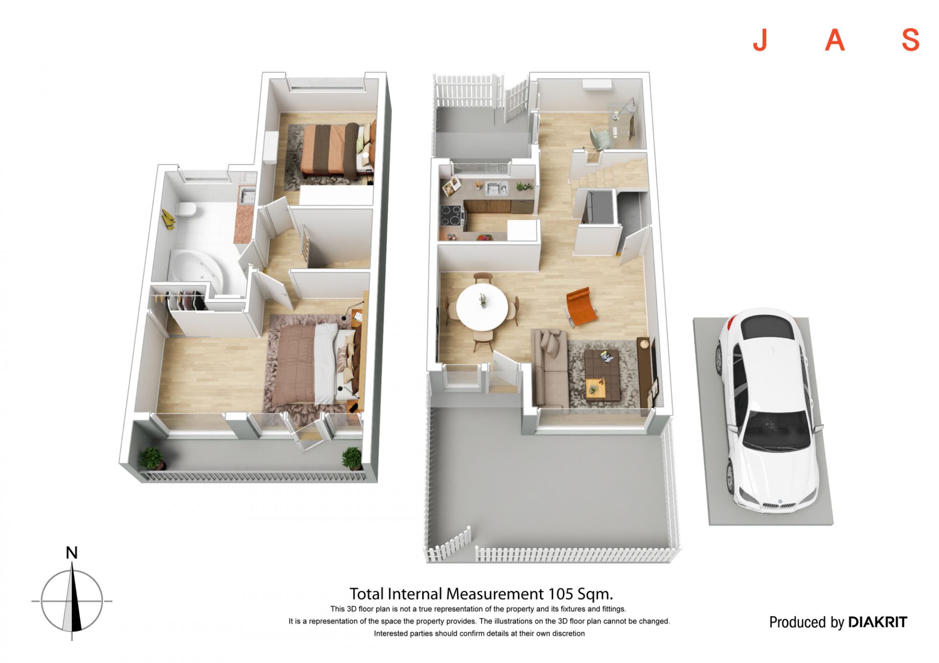 Head upstairs to find two luxuriously carpeted bedrooms with built-in robes, including an oversized master with a private covered balcony. The centrally positioned bathroom offers the indulgence of a large spa bath, while its incorporated laundry facilities ensure convenience.