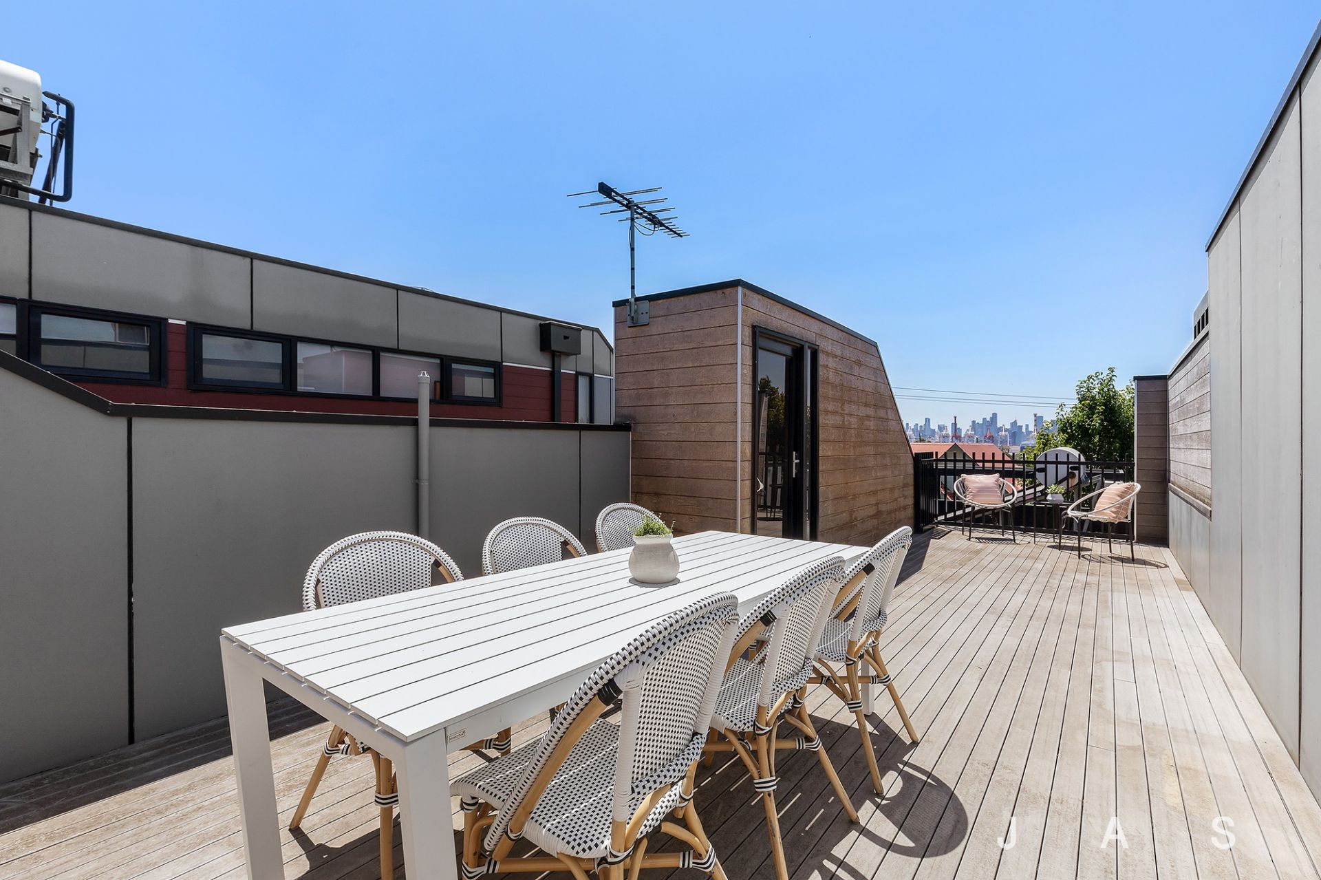 Step out to the full-width balcony for an after-dinner drink, or head upstairs to the huge rooftop deck, where sparkling city views set the perfect backdrop for alfresco gatherings and celebrations.